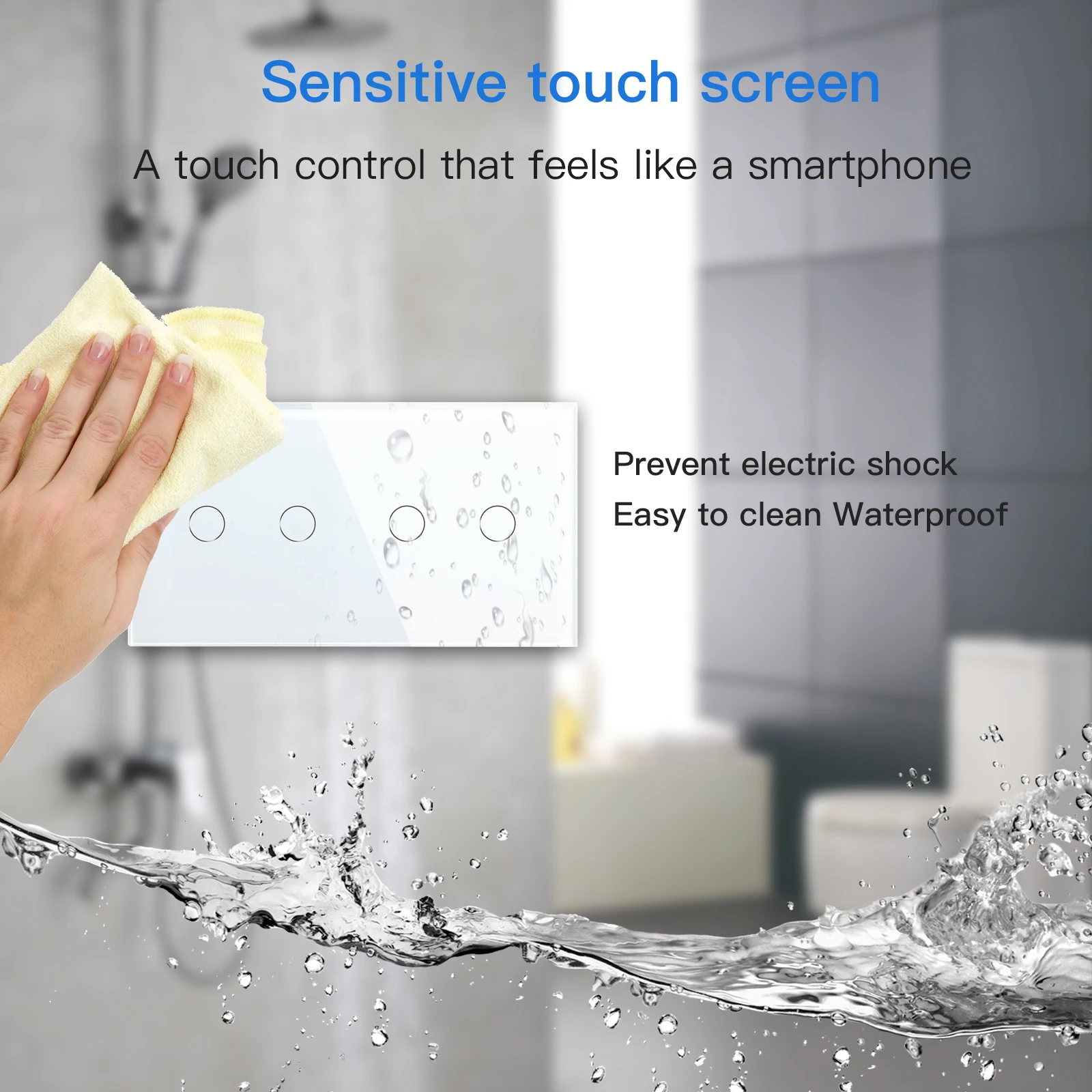 Настенный сенсорный выключатель Bseed, переключатель с двумя клавишами, 4 клавиши, 1 канал, белая, черная, Золотая панель класса, водонепроницаемый переключатель для светильник светки