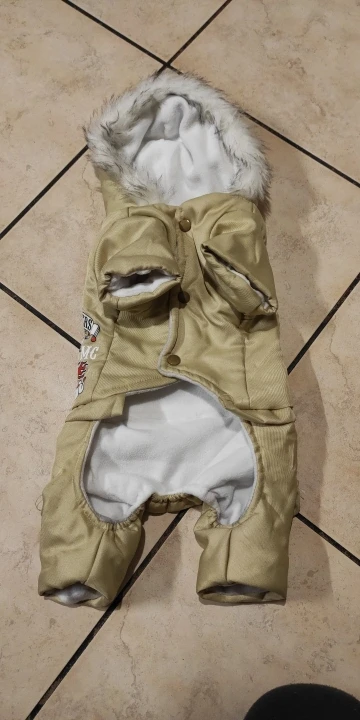 модель немного отличается от фото,нет трикотажных манжет на рукавах и штанинах(очень жаль,с ними теплее),немного другой крой на животике.в остальном все хорошо,размерная сетка соответствует,на йорка 3,400 кг взяла L,на нем сидит хорошо,можно под низ ещё кофточку одеть.
