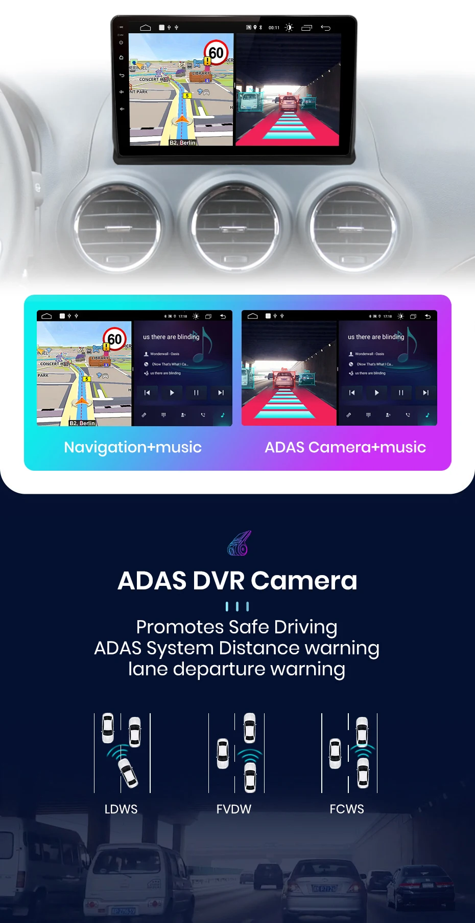 1. Голосовое управление AI: Просто скажите, что командное слово контролирует радио без рук, сделайте привод более безопасным2. ADAS DVR камера, контроль давления в шинах, OBD2, внешний микрофон, RCA кабель;
