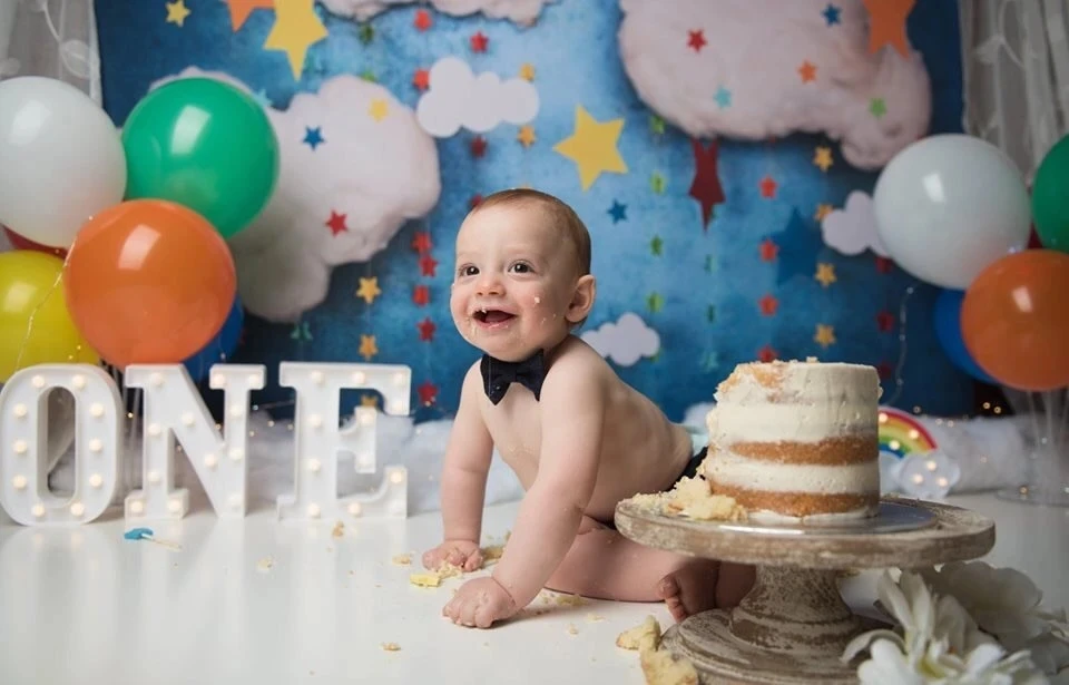 Mocsicka мальчик 1st день рождения фоны для фотографии торт Smash Фотостудия Фото фоны белые облака звезды декор