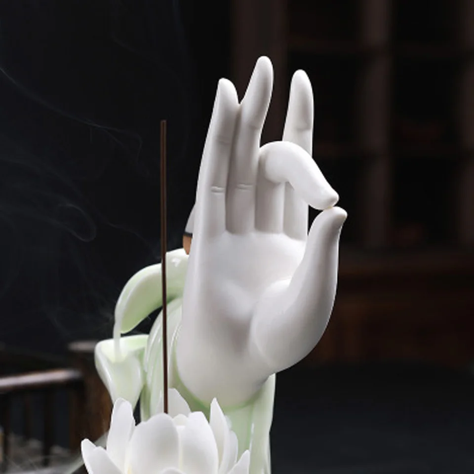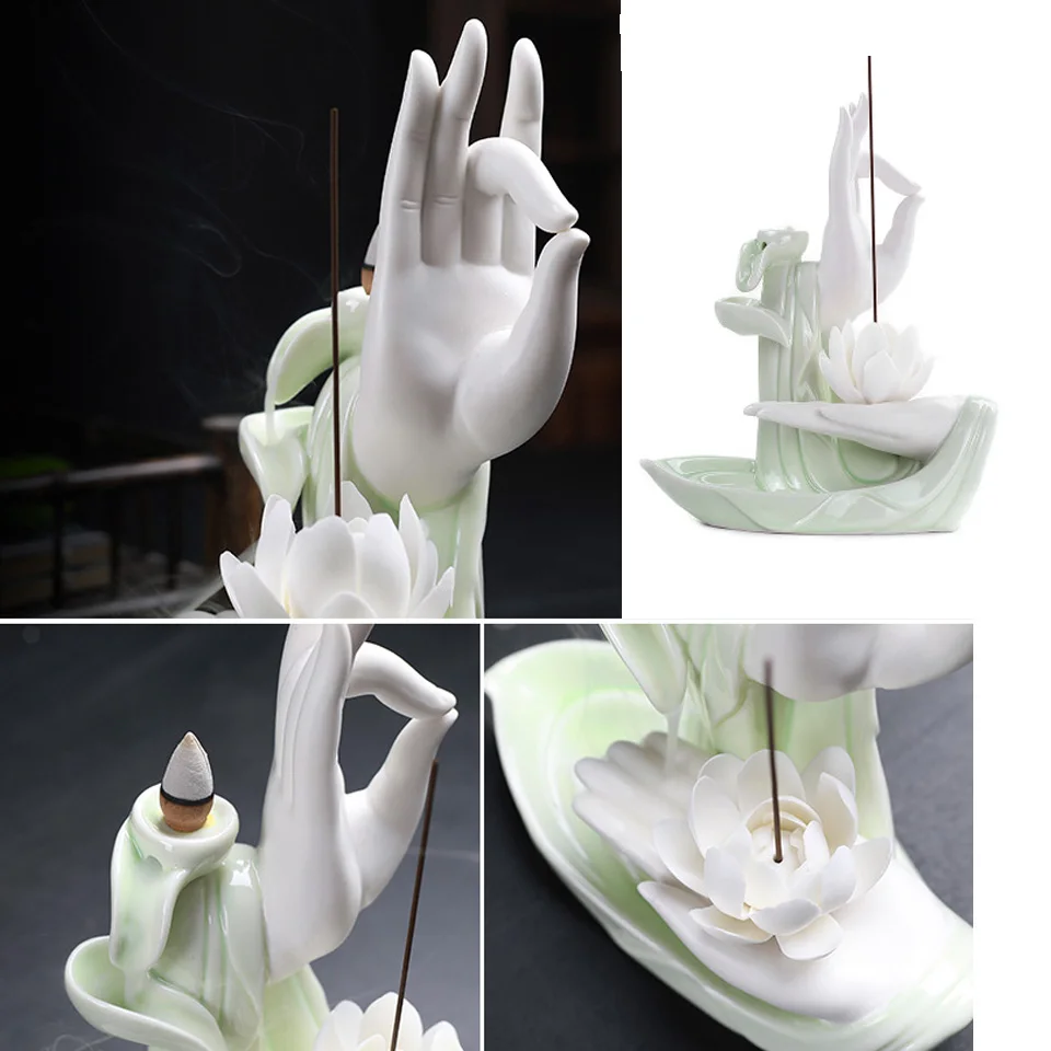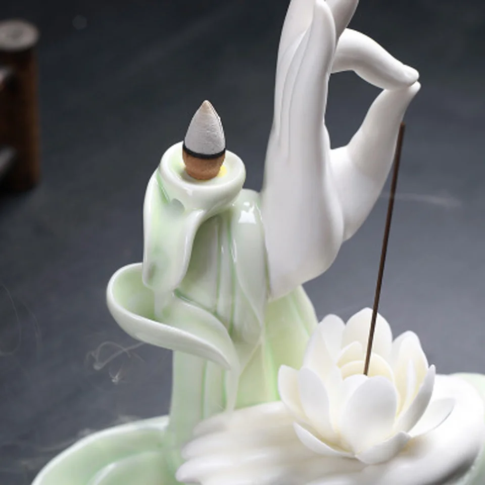 Курильница с лотосом, 20 конусов, керамическая, курильница с Буддой