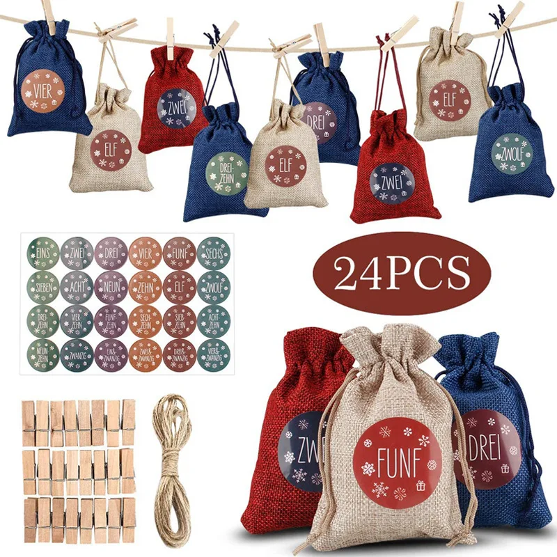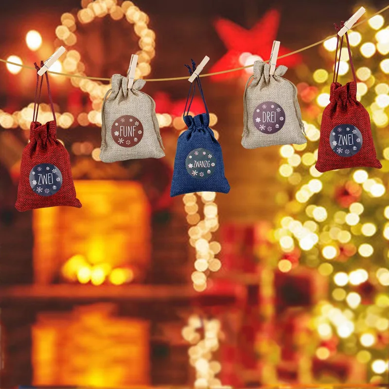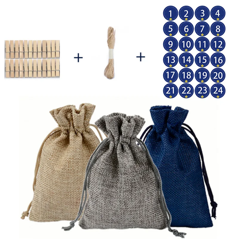 Новогодние подарочные пакеты, календарь, обратный отсчет, 24 дня, календарь для прибытия из мешковины, подарочные пакеты на шнурке, новогодний подарок для детей, подвеска на стену для двери