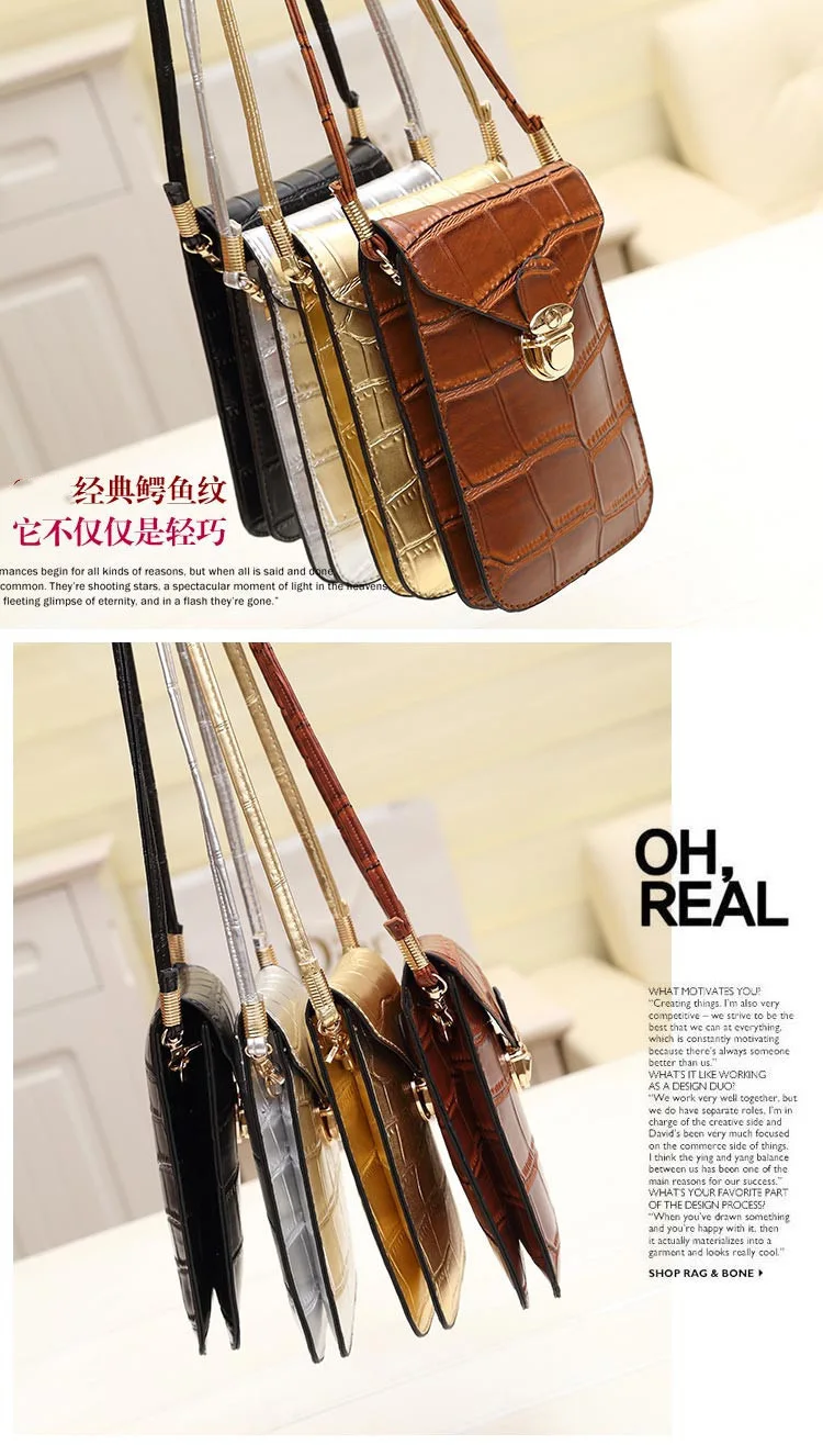 Сумки-мессенджеры мобильный телефон для женщин, маленькая сумка на плечо из искусственной кожи крокодила, черный клатч с клапаном
