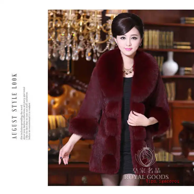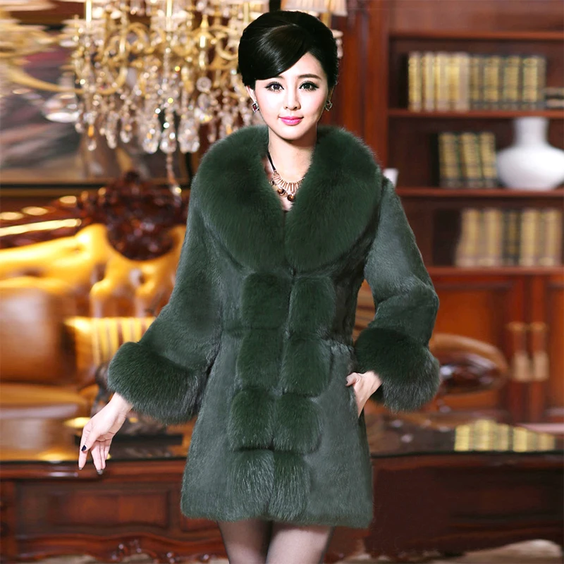 Модная зимняя Толстая теплая меховая куртка с воротником из меха лисы, женское повседневное Свободное длинное пальто из искусственного кроличьего меха, Женское пальто, Женское пальто