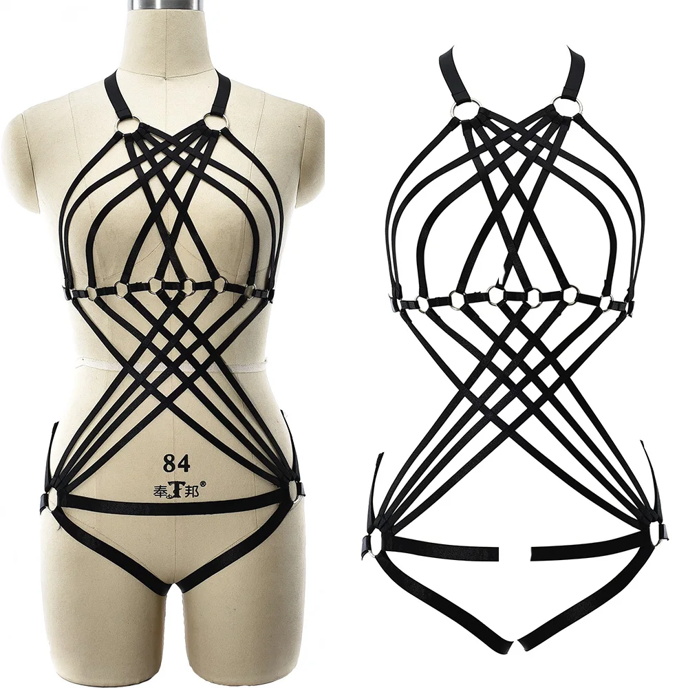Портупея с вырезами, черный сексуальный комплект нижнего белья, бандаж для танцев на Пилоне, Готическая клетка, боди в стиле панка