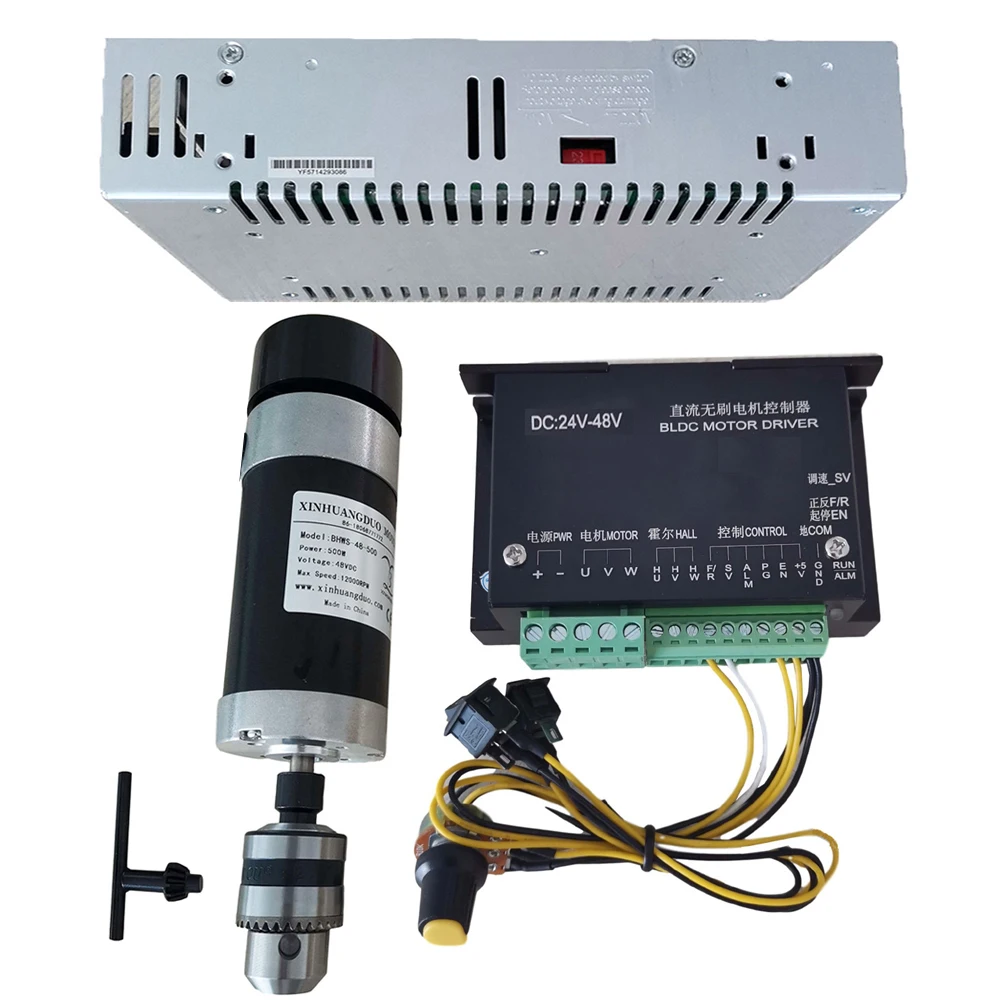 Высокоскоростной бесщеточный двигатель с большим крутящим моментом, 48 В постоянного тока, 500 Вт, шпиндель с воздушным охлаждением, контроллер драйвера, источник питания