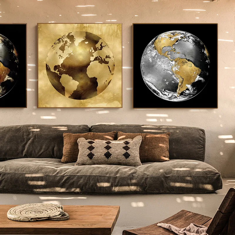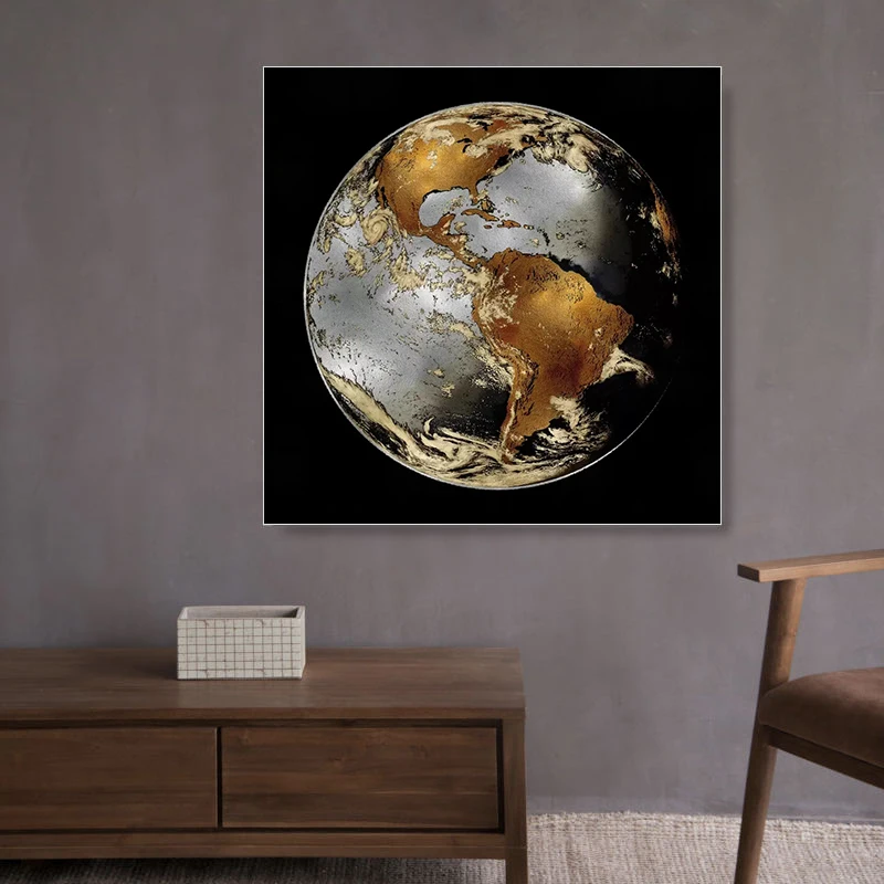 Современная Золотая серая карта земли мира Холст Картина маслом земли постер печать Скандинавская Настенная картина карта картина домашний декор