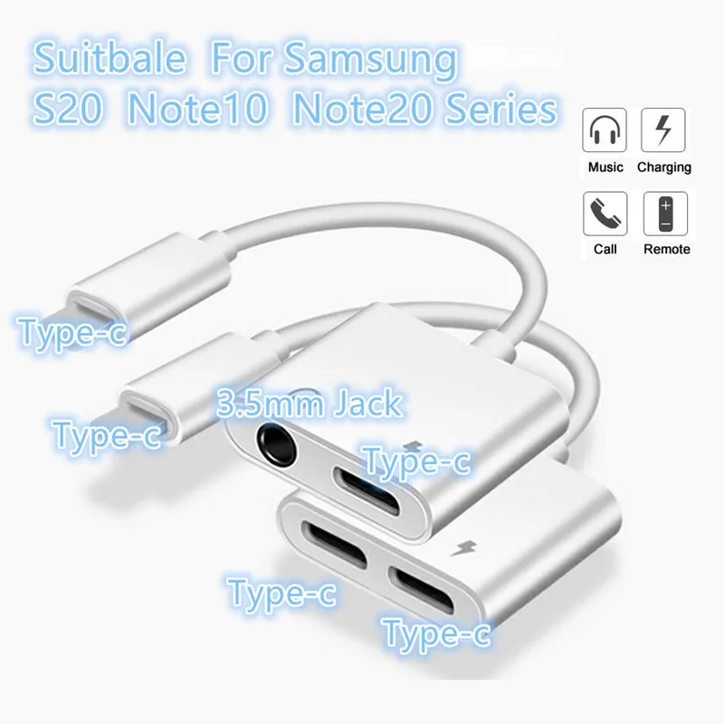 Для Samsung Galaxy Note 20 S20 Ultra Note 10 Note 20 S20 Plus 5G USB C адаптер для аудио разъема для зарядки двойной разветвитель типа c
