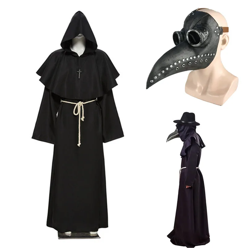 Костюм Чумного доктора для косплея, средневековый Халат с капюшоном, ужасная маска в стиле стимпанк, костюм монаха для взрослых, костюм на Хэллоуин для ролевых игр, C34143AD