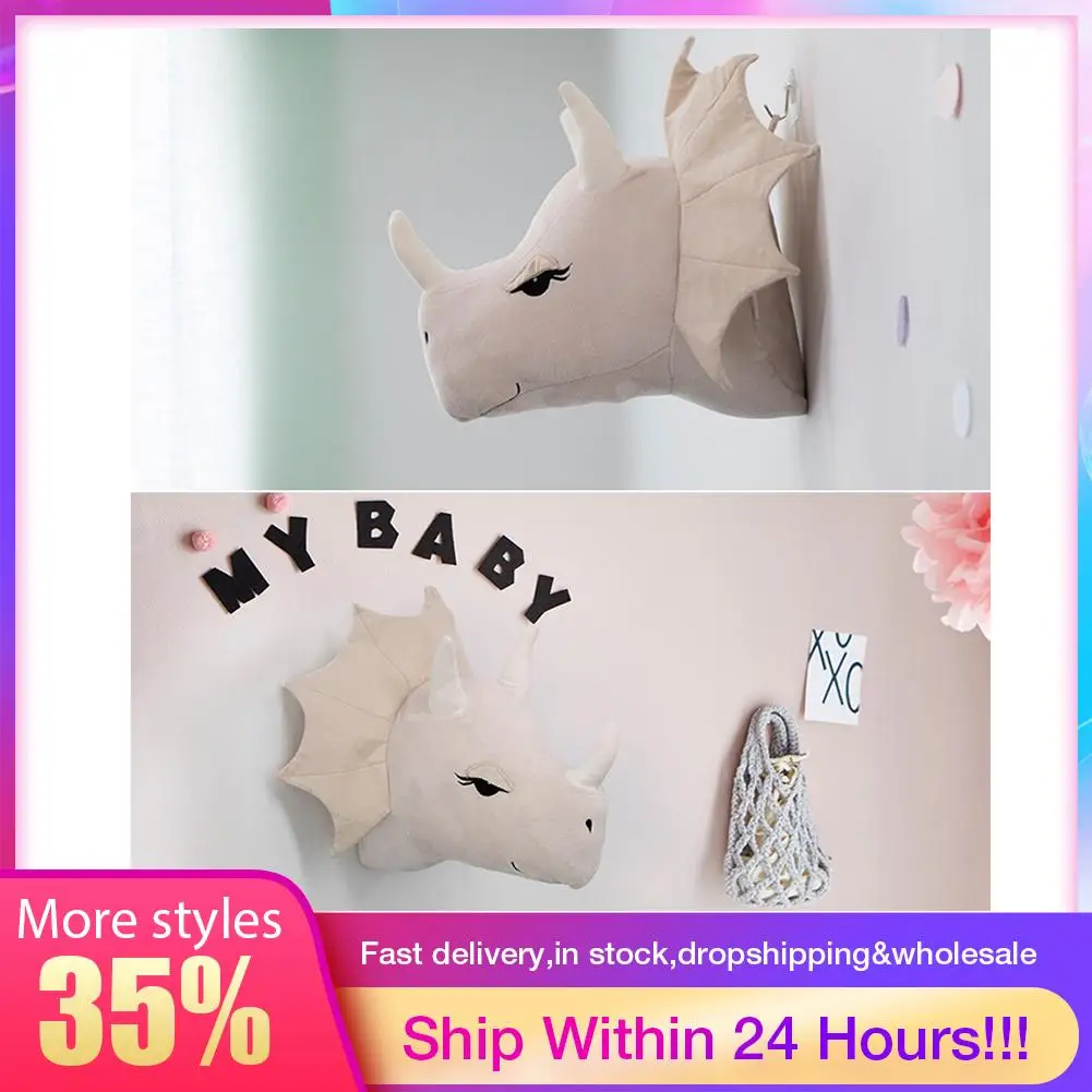 Плюшевая голова, динозавр, носорог, единорог, детская комната, Деко...
