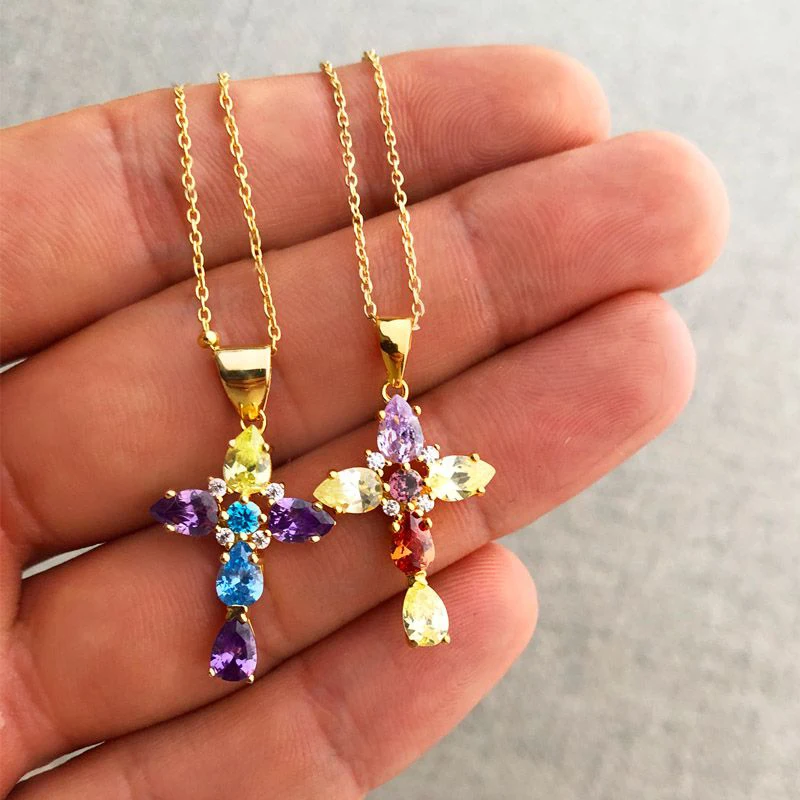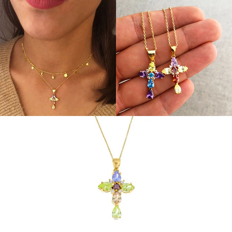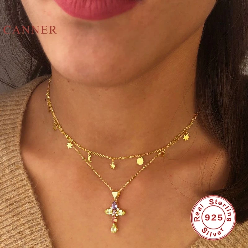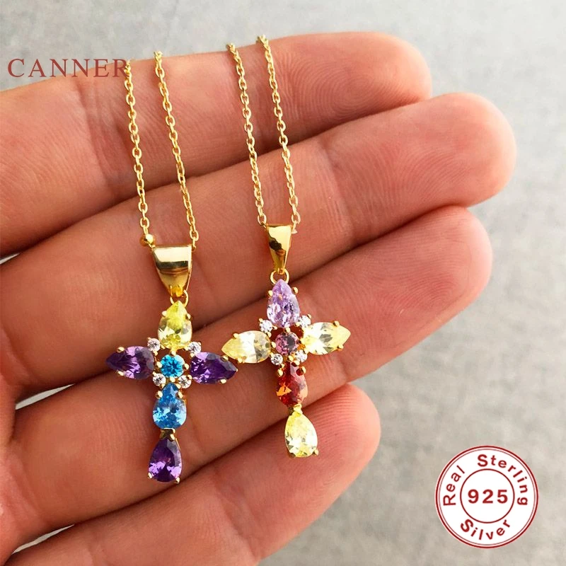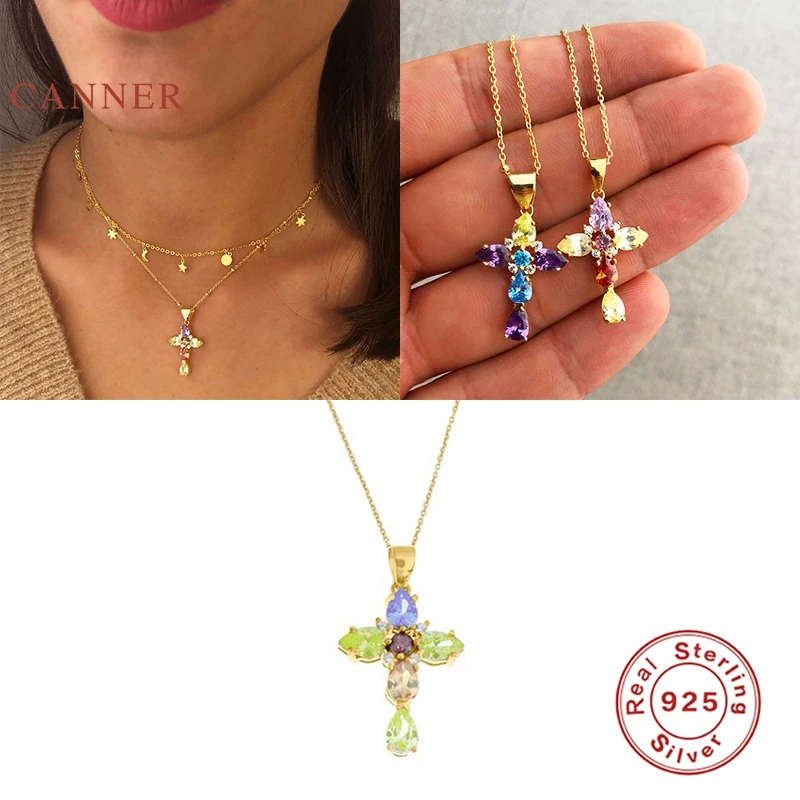CANNER Настоящее серебро 925 пробы ожерелье крест Цветной циркон ожерелье для женщин 2020 ювелирные изделия цепь ожерелье Бижутерия Воротник