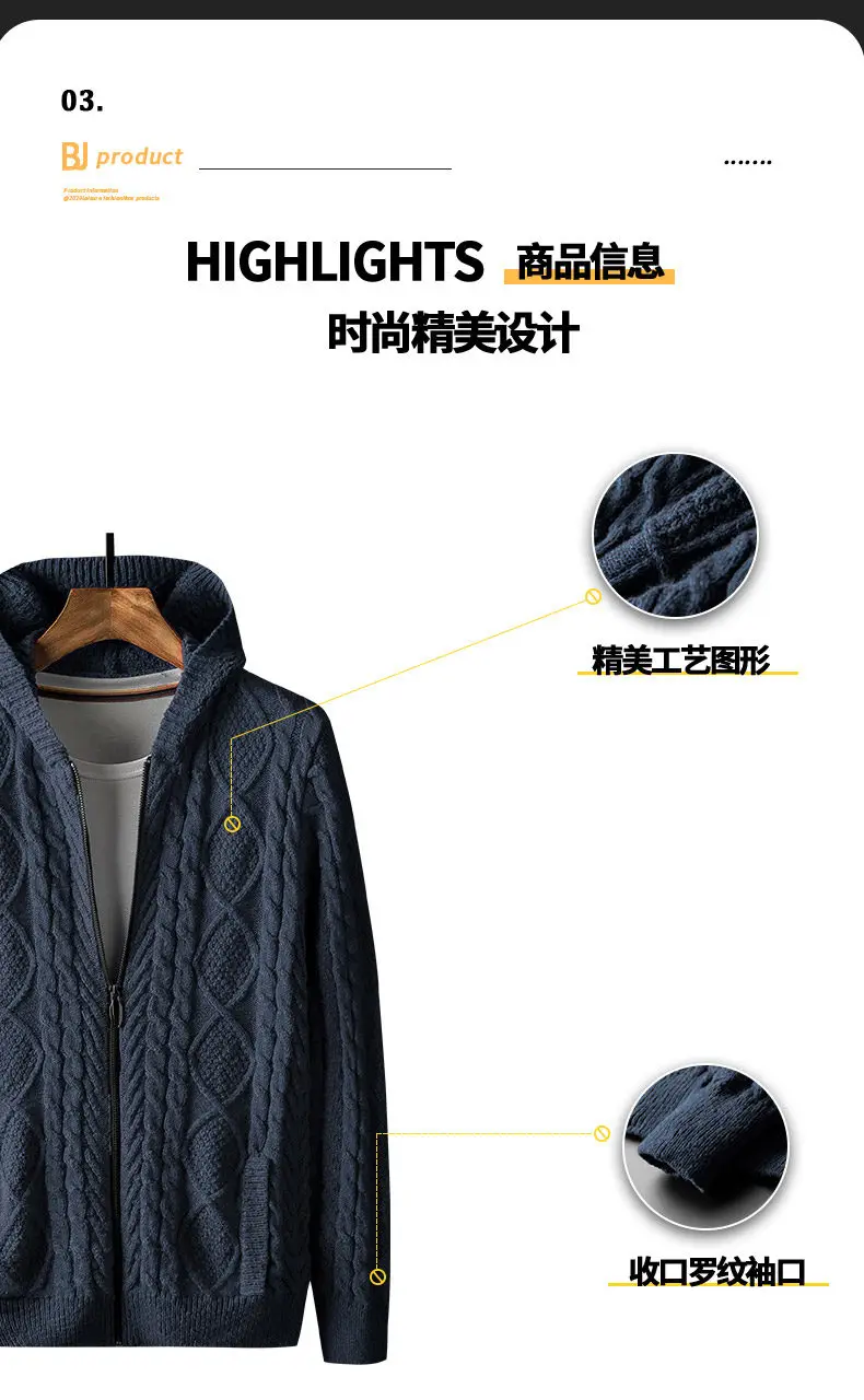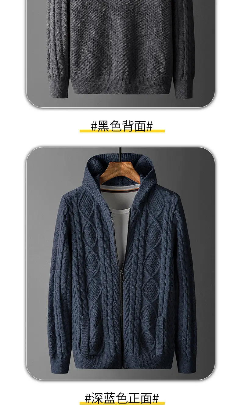 Высококачественный свитер с капюшоном, пальто, мужской свитер, куртка, мужской свитер, пальто, витая зимняя хлопковая плотная трикотажная одежда, мужской кардиган на молнии