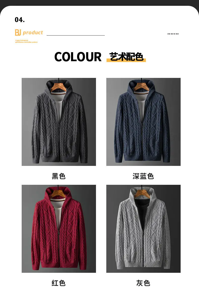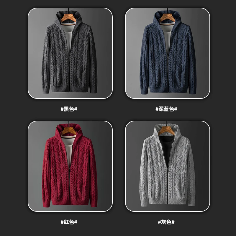 Высокое качество, свитер с капюшоном, пальто, мужской свитер, куртка, мужской свитер, скрученный зимний хлопковый плотный трикотаж, мужской кардиган на молнии