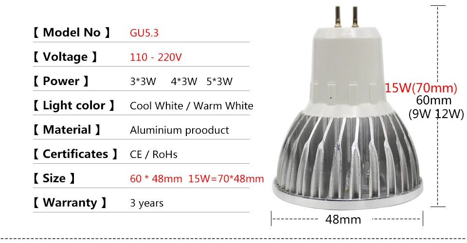Светодиодный светильник с регулируемой яркостью, E27 E14 MR16 GU10 GU53 DC12V светодиодный 9 Вт, 12 Вт, 15 Вт, холодный белый/теплый белый светодиодный лампы Точечный светильник высокого Мощность светодиодный потолочный светильник