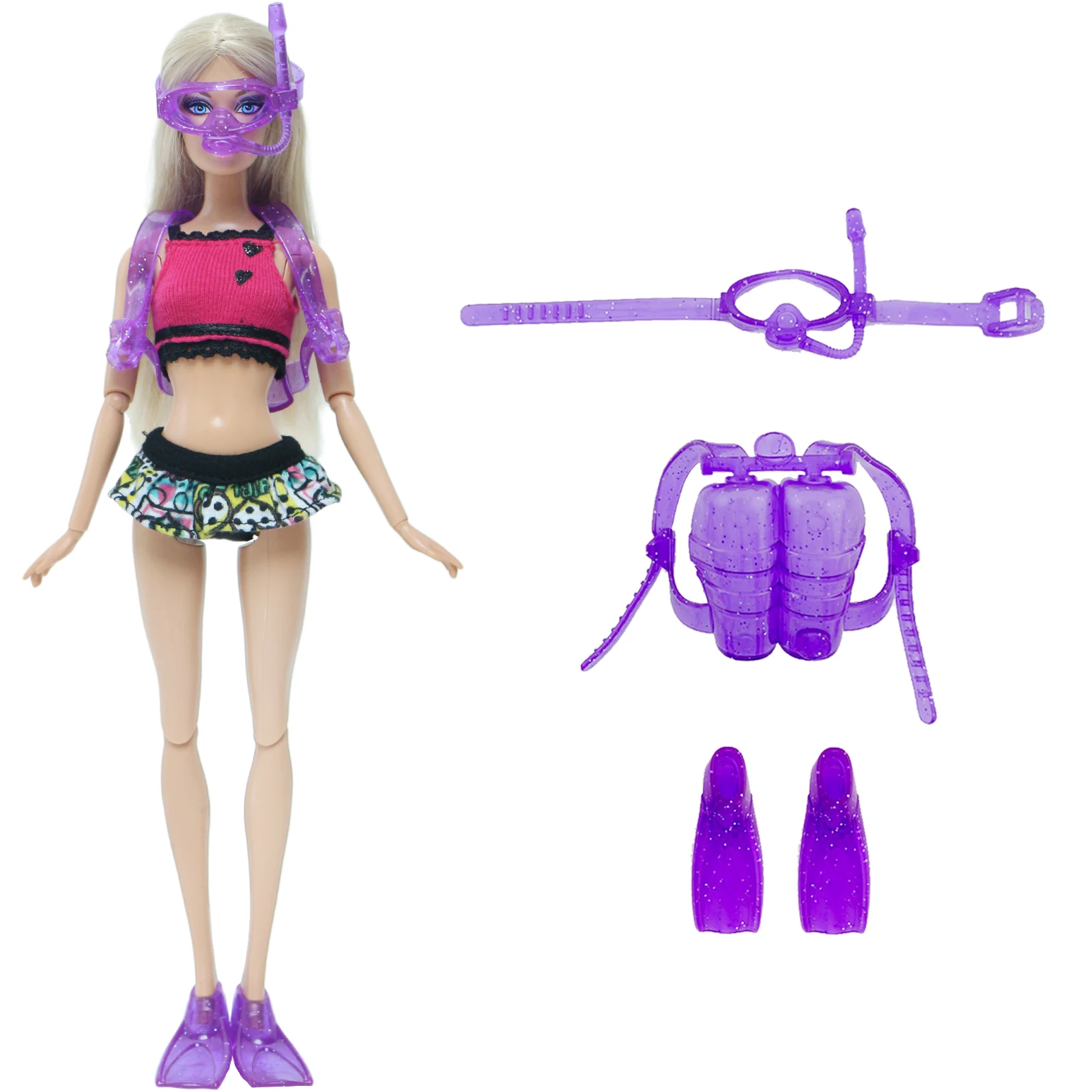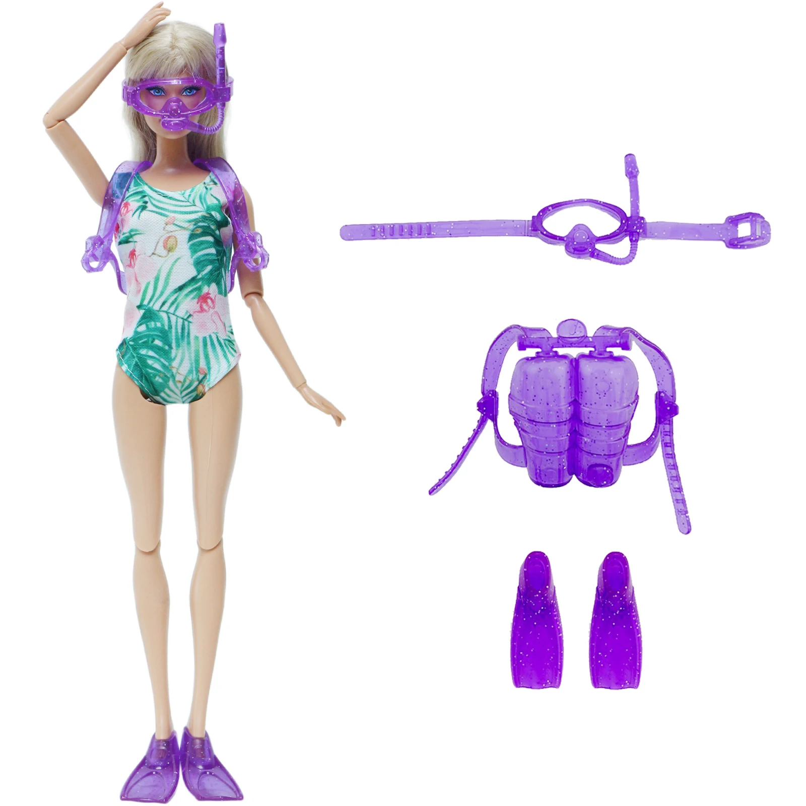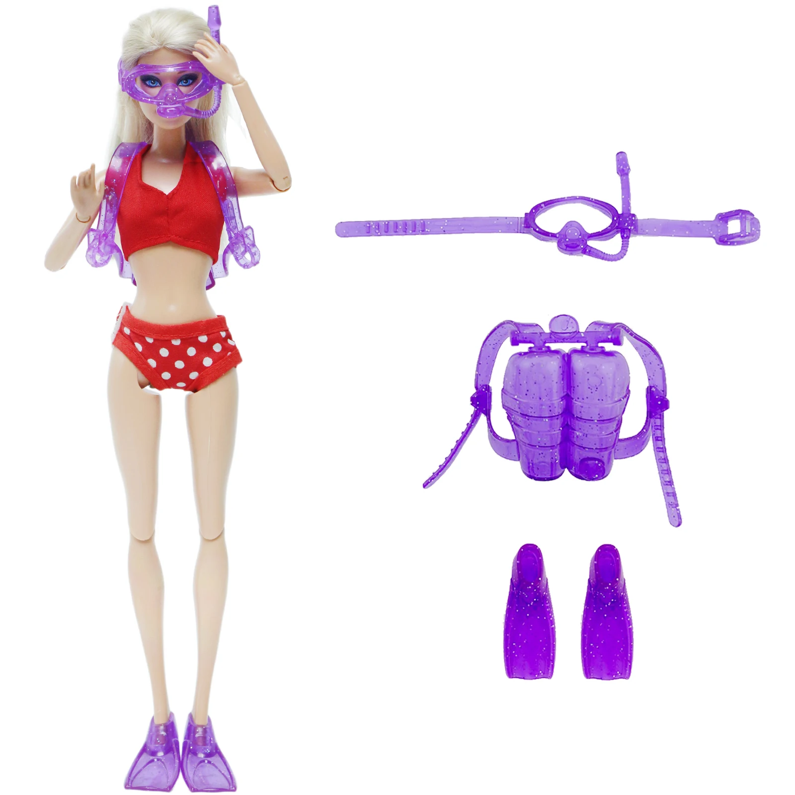 2 шт.компл. = 1x пластиковое водолазное снаряжение, кислородный резервуар + 1x модный смешанный стиль, купальник, бикини, Одежда для кукол Барби, игрушки