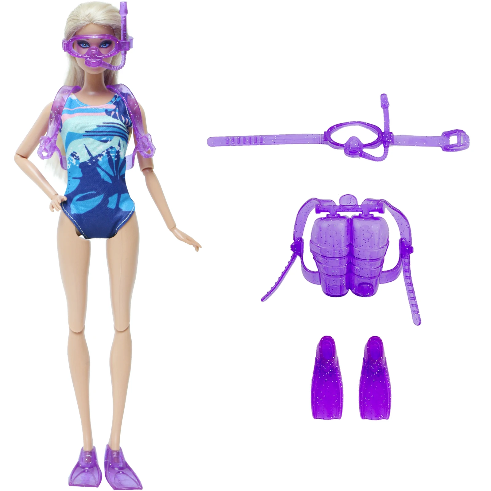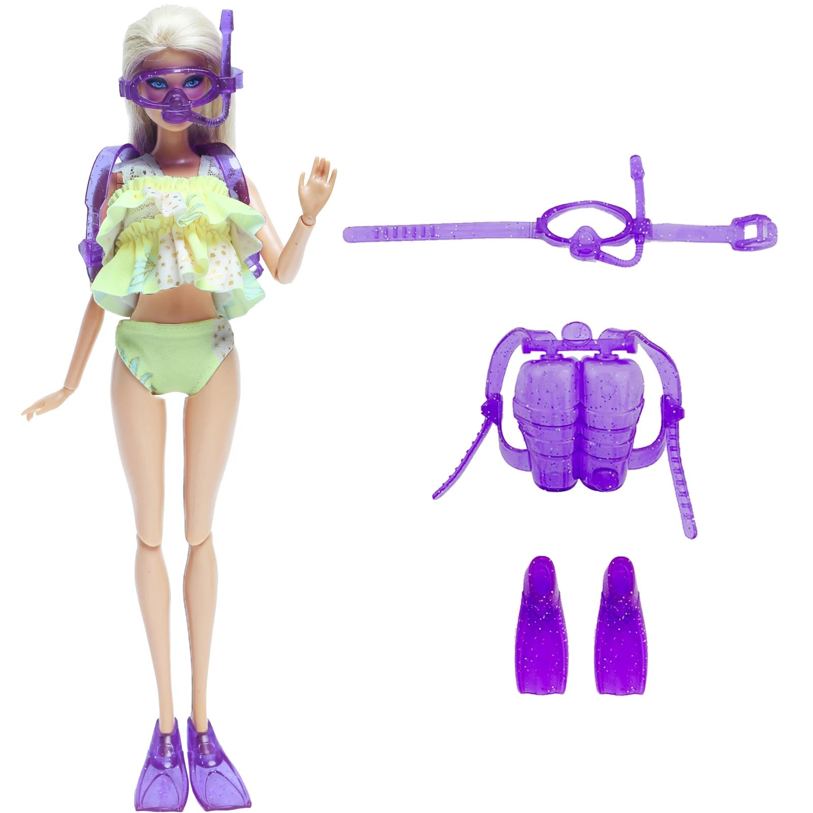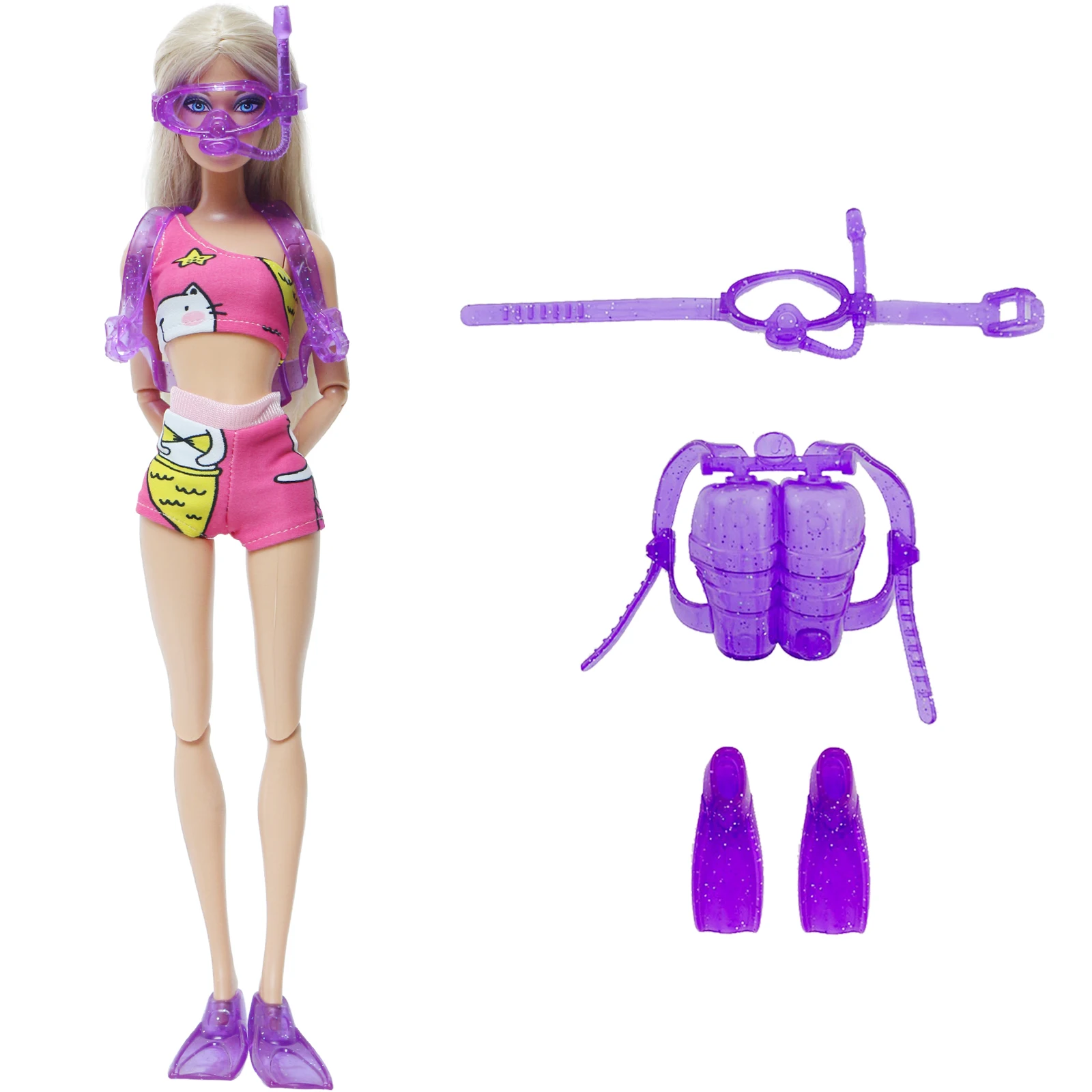 2 шт.компл. = 1x пластиковое водолазное снаряжение, кислородный резервуар + 1x модный смешанный стиль, купальник, бикини, Одежда для кукол Барби, игрушки