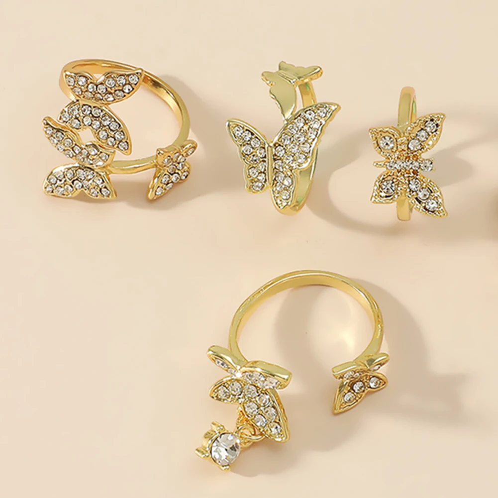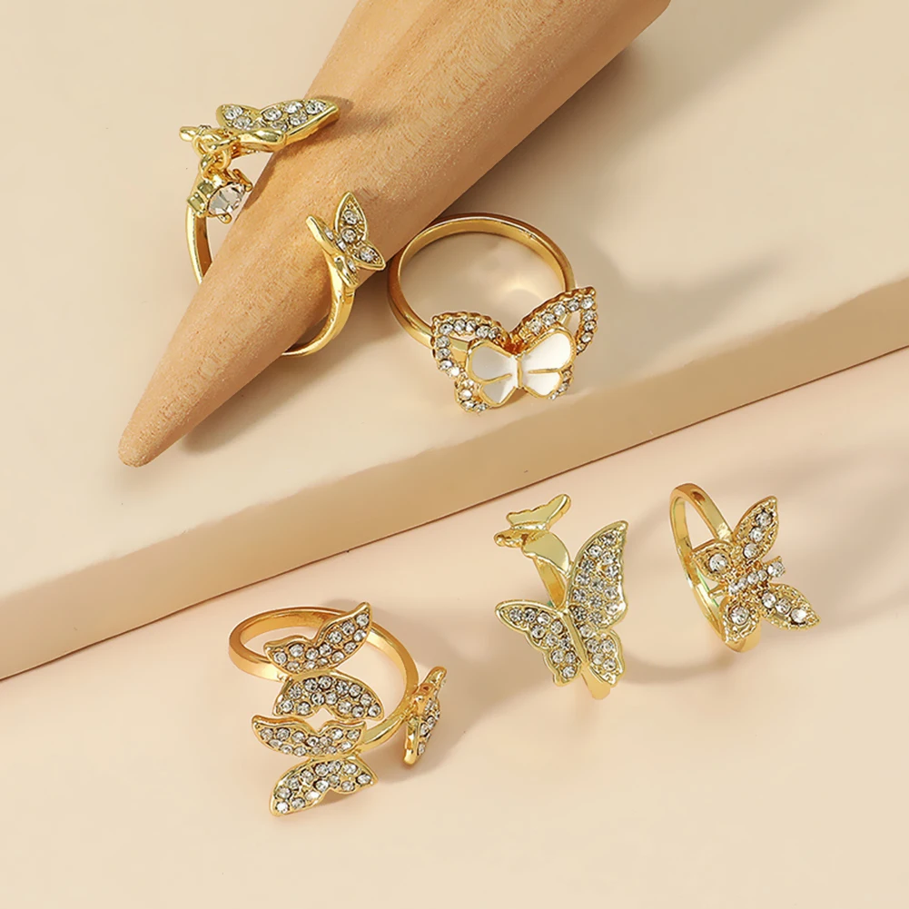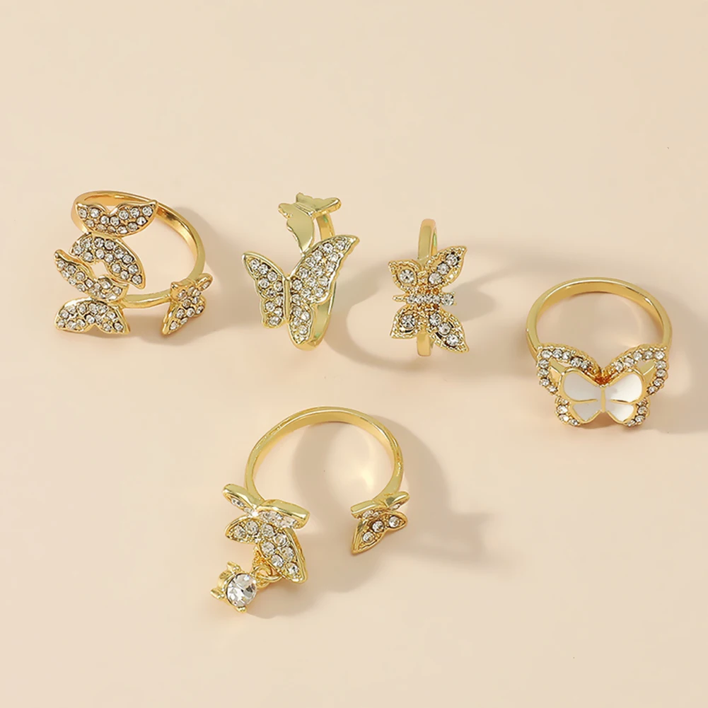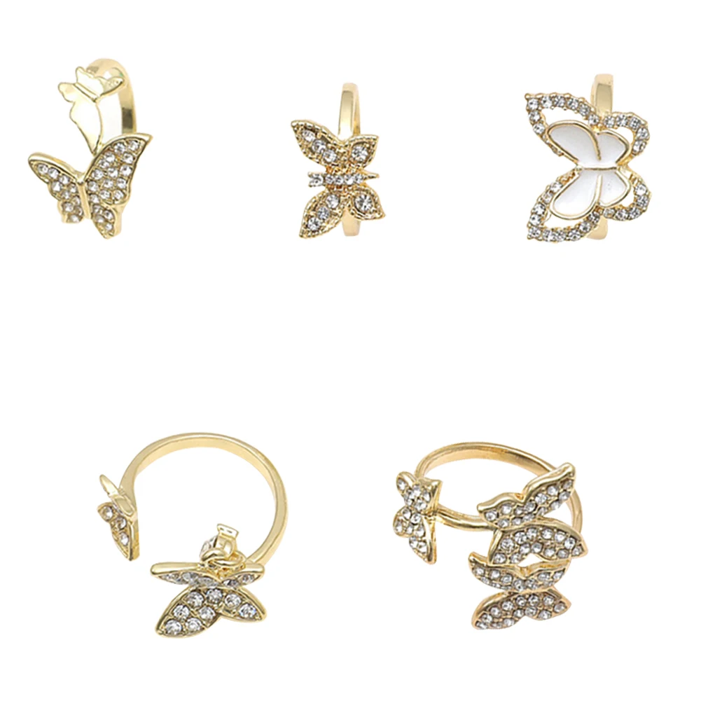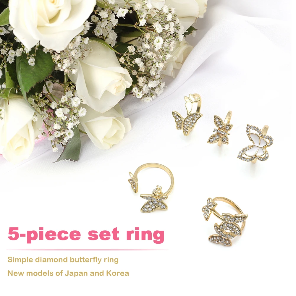 5 шт./компл., простые кольца с бабочками, корейские стразы, кольцо с открытым кулаком для женщин, очаровательные праздничные вечерние уличные ювелирные изделия, подарок