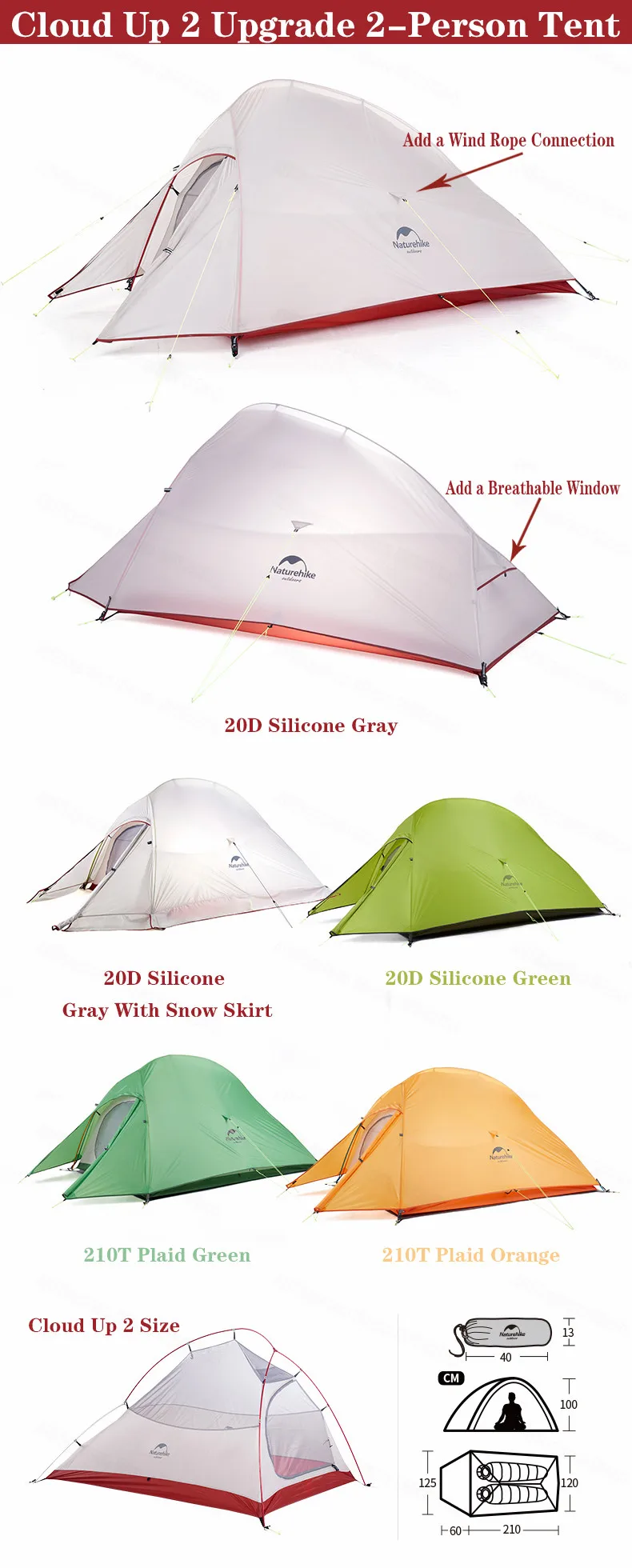 Палатка Naturehike Cloud Up 2 туристическая Ультралегкая, на 2 человек, 20D210T, двухслойная водонепроницаемая, Уличное оборудование