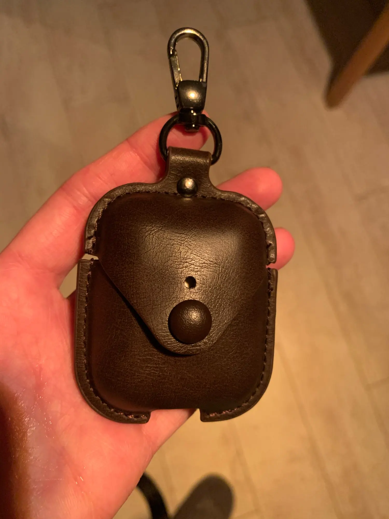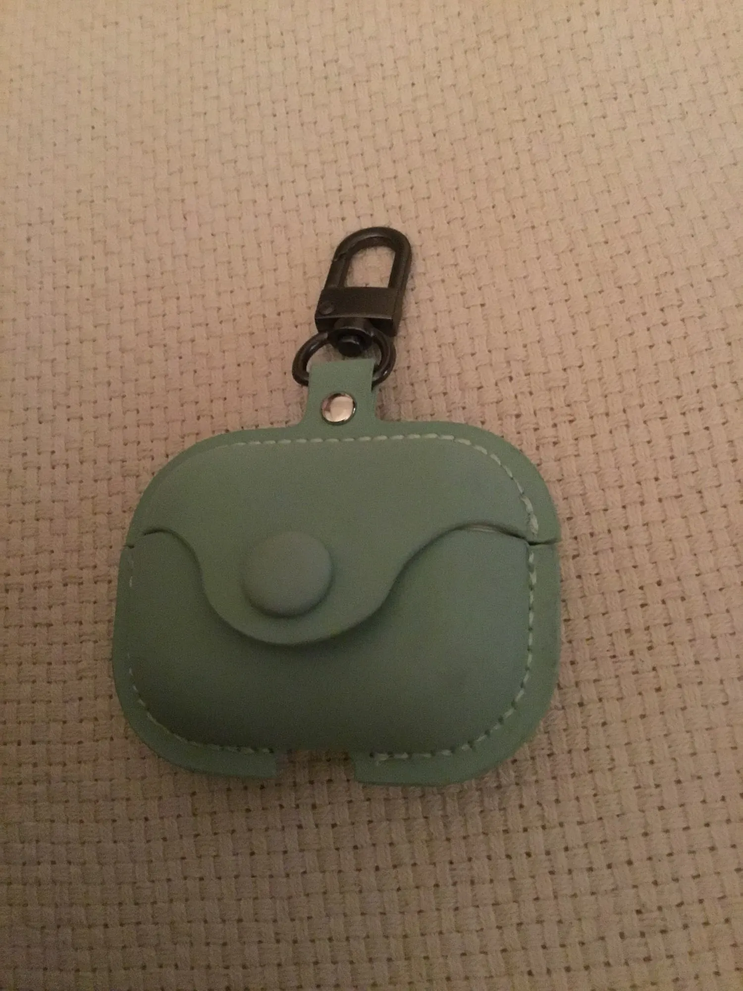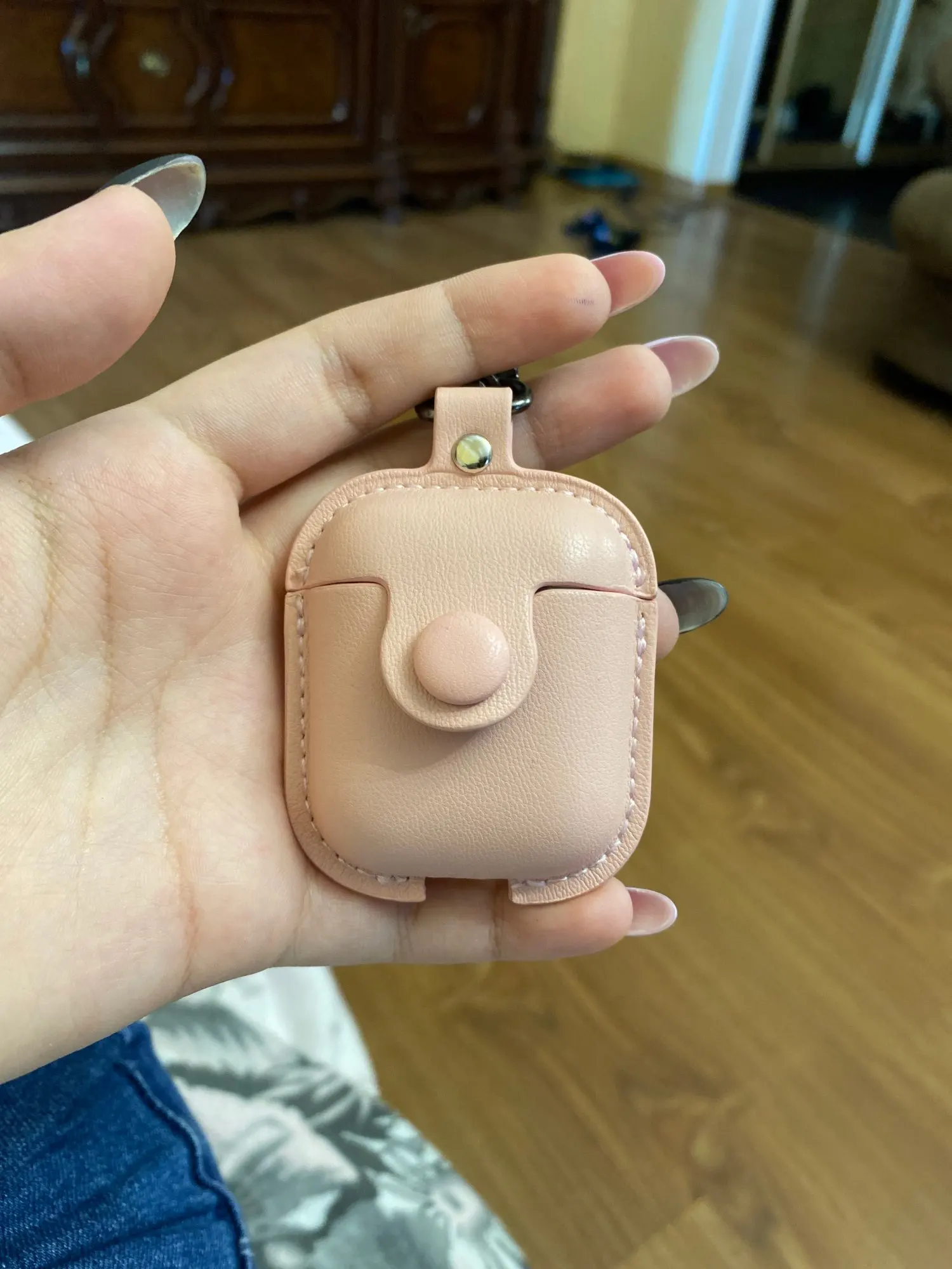 Доставка до Москвы 2 недели. Приятный материал, красивый цвет. Кнопка хорошо застёгивается. Карабин нормальный. Но есть ощущениях что его не надолго хватит:) Но это не факт, врем покажет:) Крышка чехла никак не фиксируется на кейсе наушников, поэтому получается, сначала открываешь чехол, потом кейс;) Но мне и так норм, зато выглядит красиво))