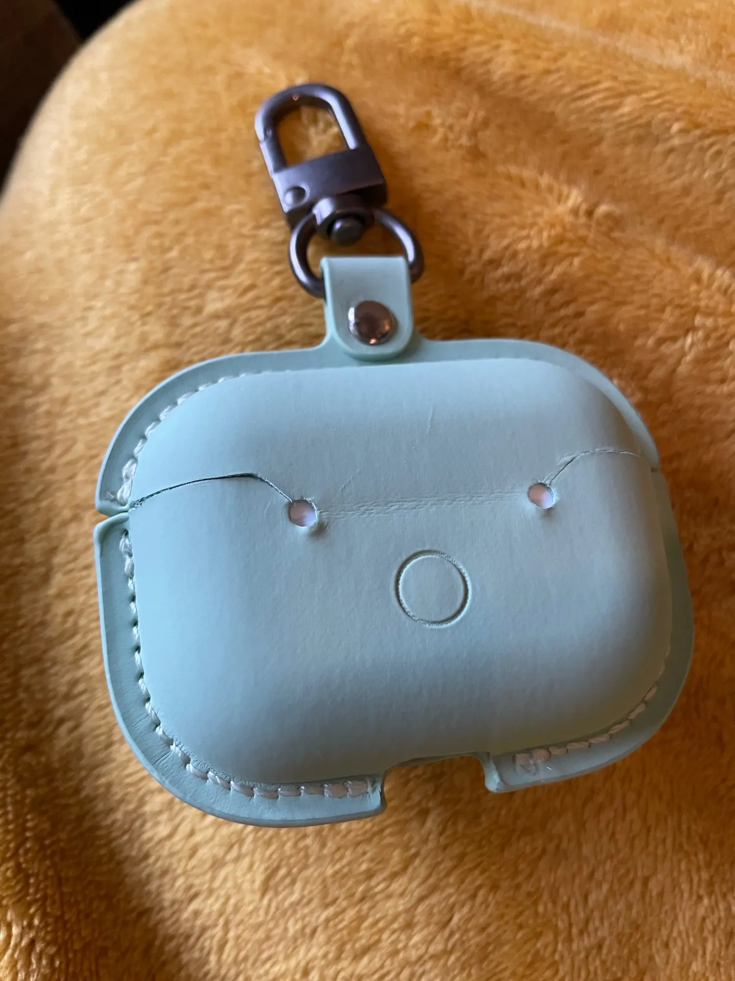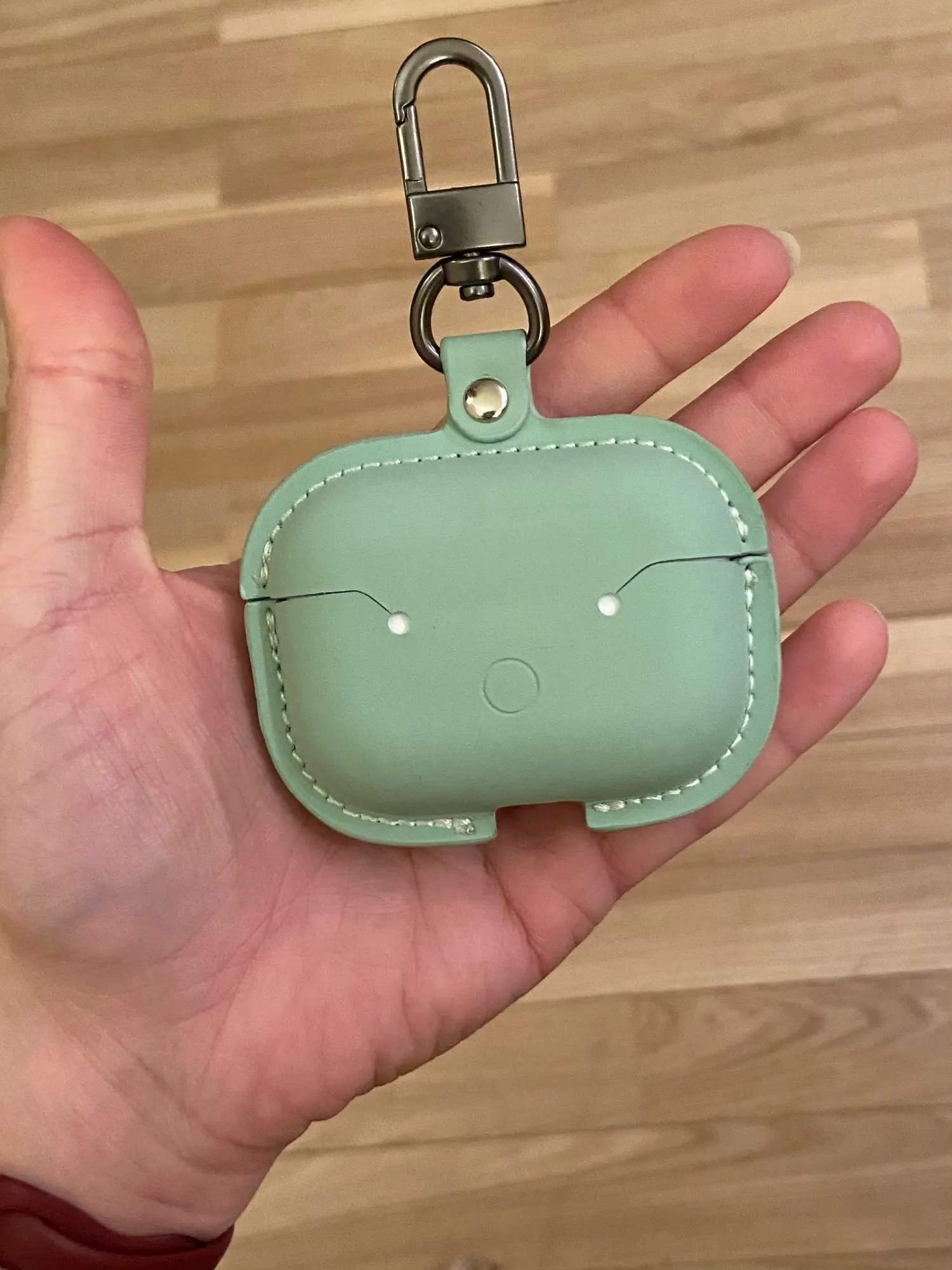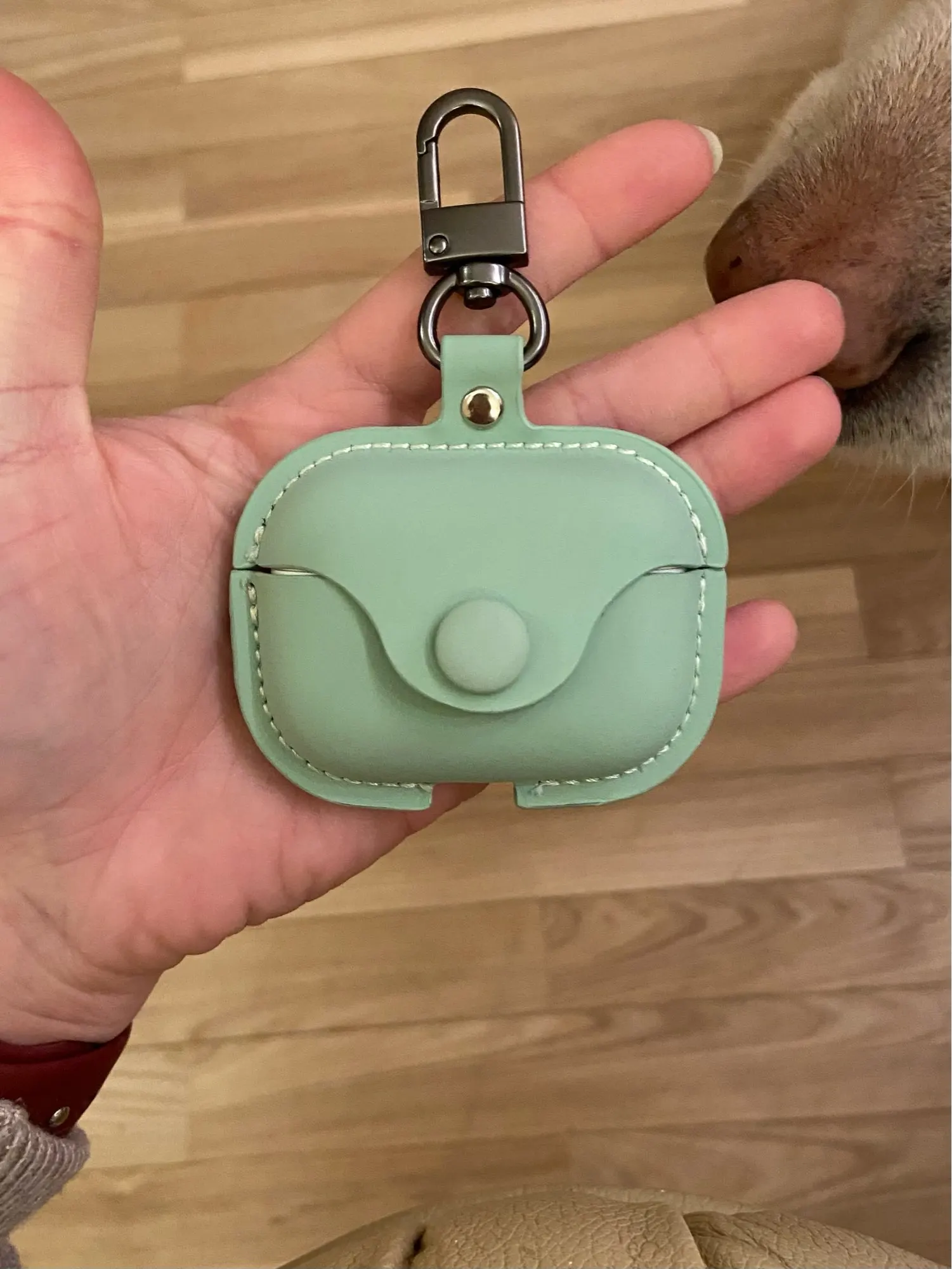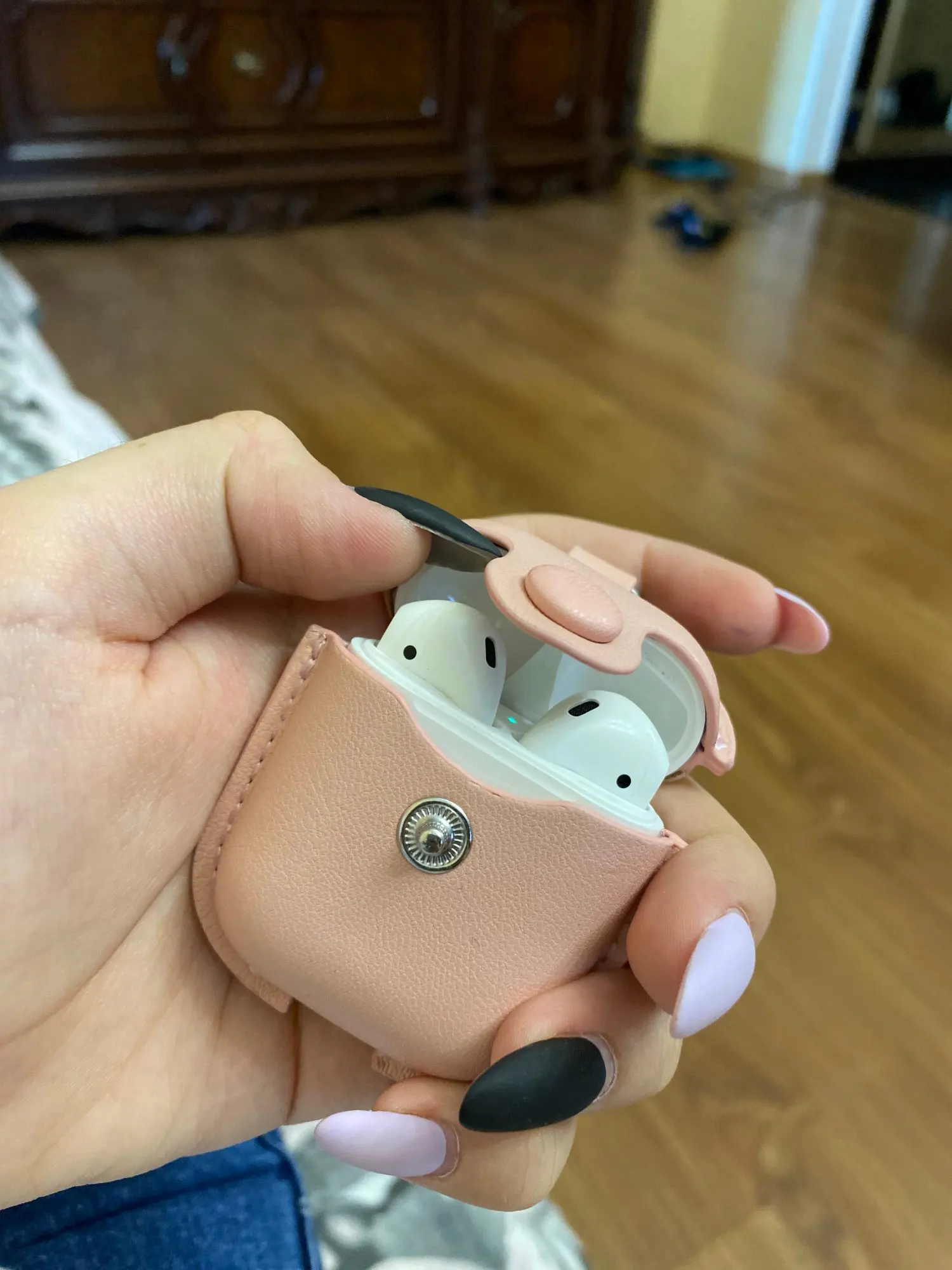 Доставка до Москвы 2 недели. Приятный материал, красивый цвет. Кнопка хорошо застёгивается. Карабин нормальный. Но есть ощущениях что его не надолго хватит:) Но это не факт, врем покажет:) Крышка чехла никак не фиксируется на кейсе наушников, поэтому получается, сначала открываешь чехол, потом кейс;) Но мне и так норм, зато выглядит красиво))