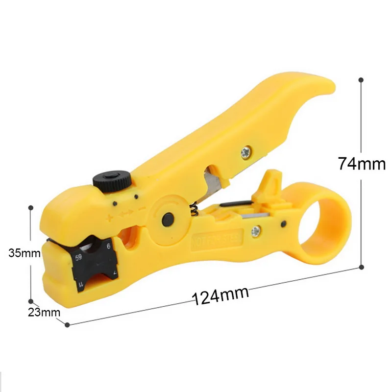 Особенности:1. Характеристики: простота в эксплуатации, может использоваться для резки кабеля. Легкий, компактный, экономичный стриптизерша.2. Регулируемая конструкция: регулируемый зачистки лезвия для различной толщины изоляции, избегая повреждения экранирования.3. Многофункциональный: Универсальный резак для зачистки кабеля, коаксиальный кабель для зачистки, резак и ножницы для зачистки плоского кабеля, устройство для зачистки концов круглого кабеля.4. Просто использовать: вы можете отрегулировать глубину резки лезвия для сетевого кабеля с винтом большого пальца.5. Высокое качество: Обжимные Плоскогубцы изготовлены из высококачественного, экологически чистого АБС-пластика.6. Работает с: диапазон зачистки для коаксиального кабеля RG-59, RG-6, RG-7, RG-11 плоский провод и витая пара 4P/6P/8P; UTP/STP.7. Широкое использование: Идеально подходит для кабельного телевидения, видео, аудио и многого другого.8. Легко носить с собой и хранить: разработан с отверстием для удобной переноски и хранения.