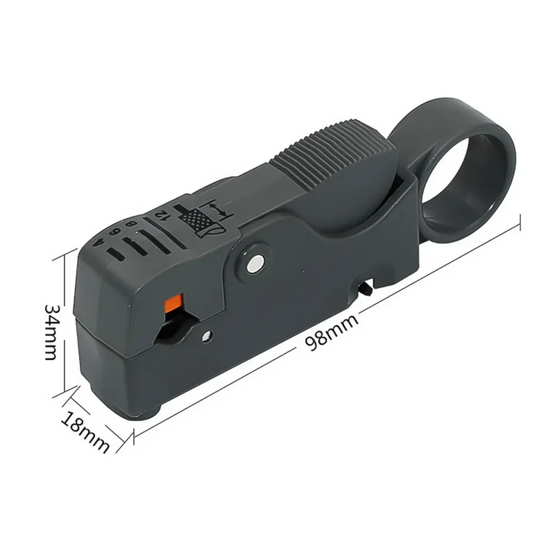 Особенности:1. Полосы Наружные оболочки коаксиальных кабелей, подходят для кабелей RG-58/6/7/11.2. С тремя лезвиями.3. Полностью регулируемые и сменные лезвия.4. Простое управление: заблокируйте инструмент поверх кабеля, поверните по часовой стрелке, затем оттяните нежелательную часть.5. Изготовлен из ударопрочного материала.6. Не нуждается в батарейках или электрике.7. Эргономичный дизайн, простота в эксплуатации.