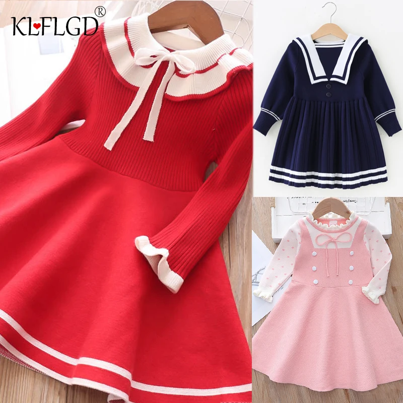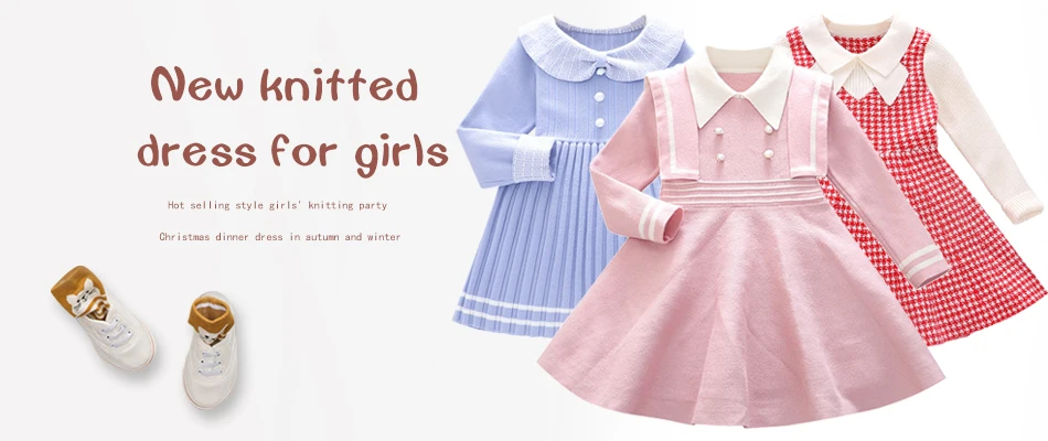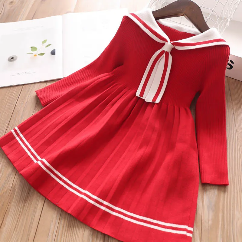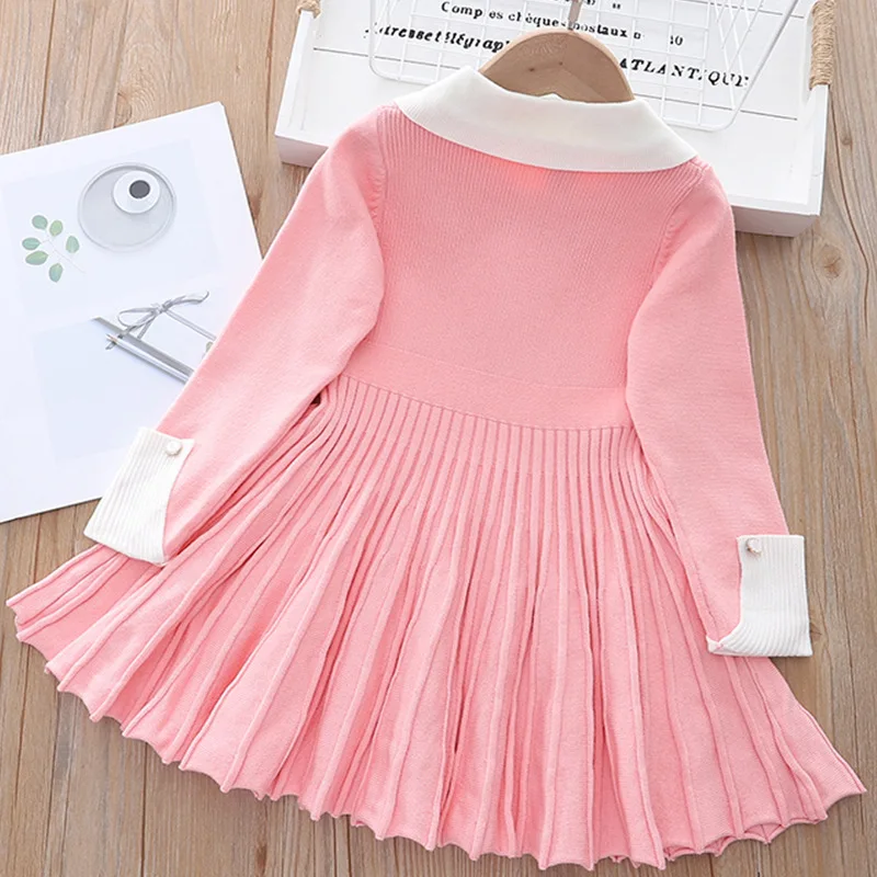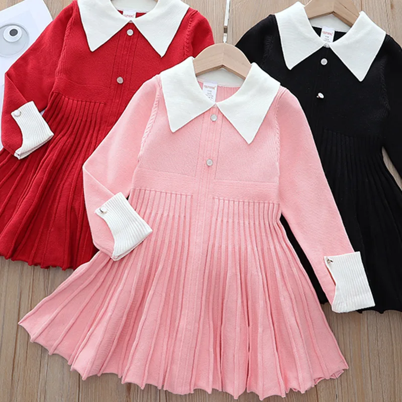 Вязаное платье-свитер для девочек, повседневное однотонное плиссированное платье принцессы