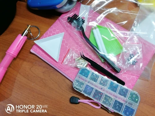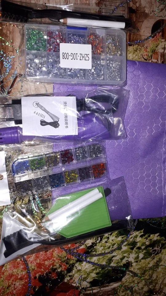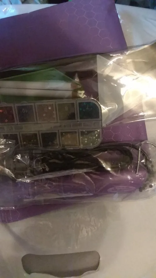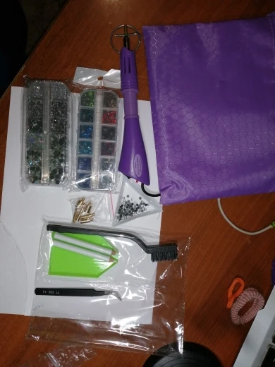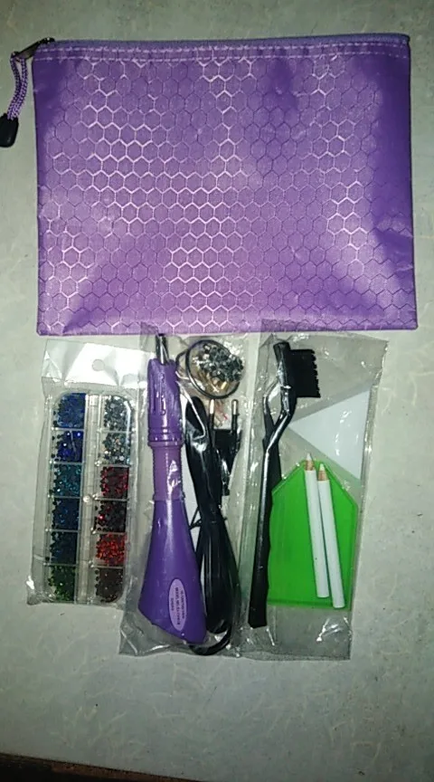 Получила посылочку и приятно удивлена. Все именно так, как на картинке. в футлярчике стразы набор. машинка с насадками, пинцет, щеточка, лоток для материала,карандаши для разметки,пакетик со стразами, видимо для пробы подставка для машинки и сумочка, чтобы все это компактно хранить. Спасибо!!!!