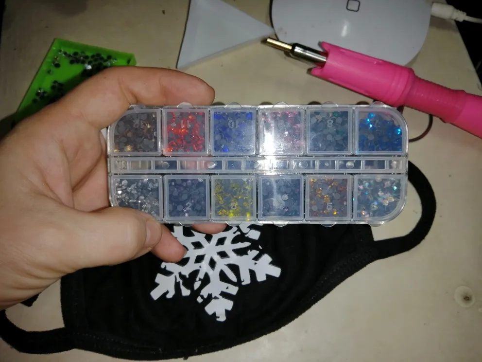 Заказ пришёл очень быстро. Стразы около 2мм.Все целое. Прибор работает. Наверно, нужно принаровиться в приклеивании страз. Наклеила на маску. Пока давольна. Спасибо продавцу. Посылка отслеживалась до пункта выдачи