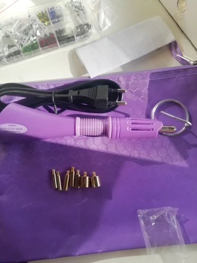 Отличный набор!!! И сумочка прилагается к нему. Как только забрала с почты, с разу испробывала его в деле. Сшила костюм Снегурочки и на нем приклела стразы присланные этим продавцом, у которого купила прибор. Работает и радует!