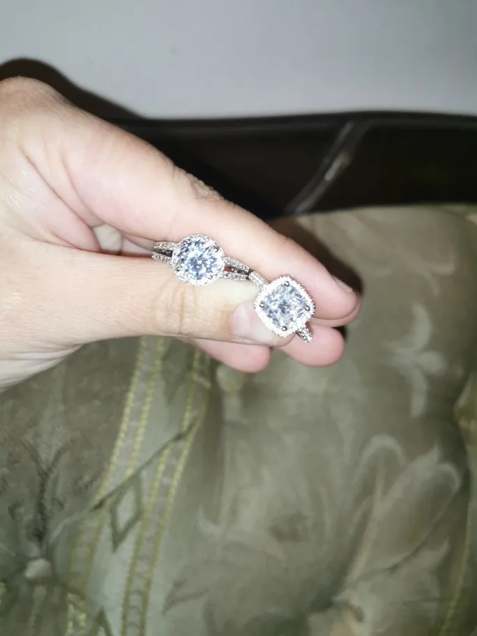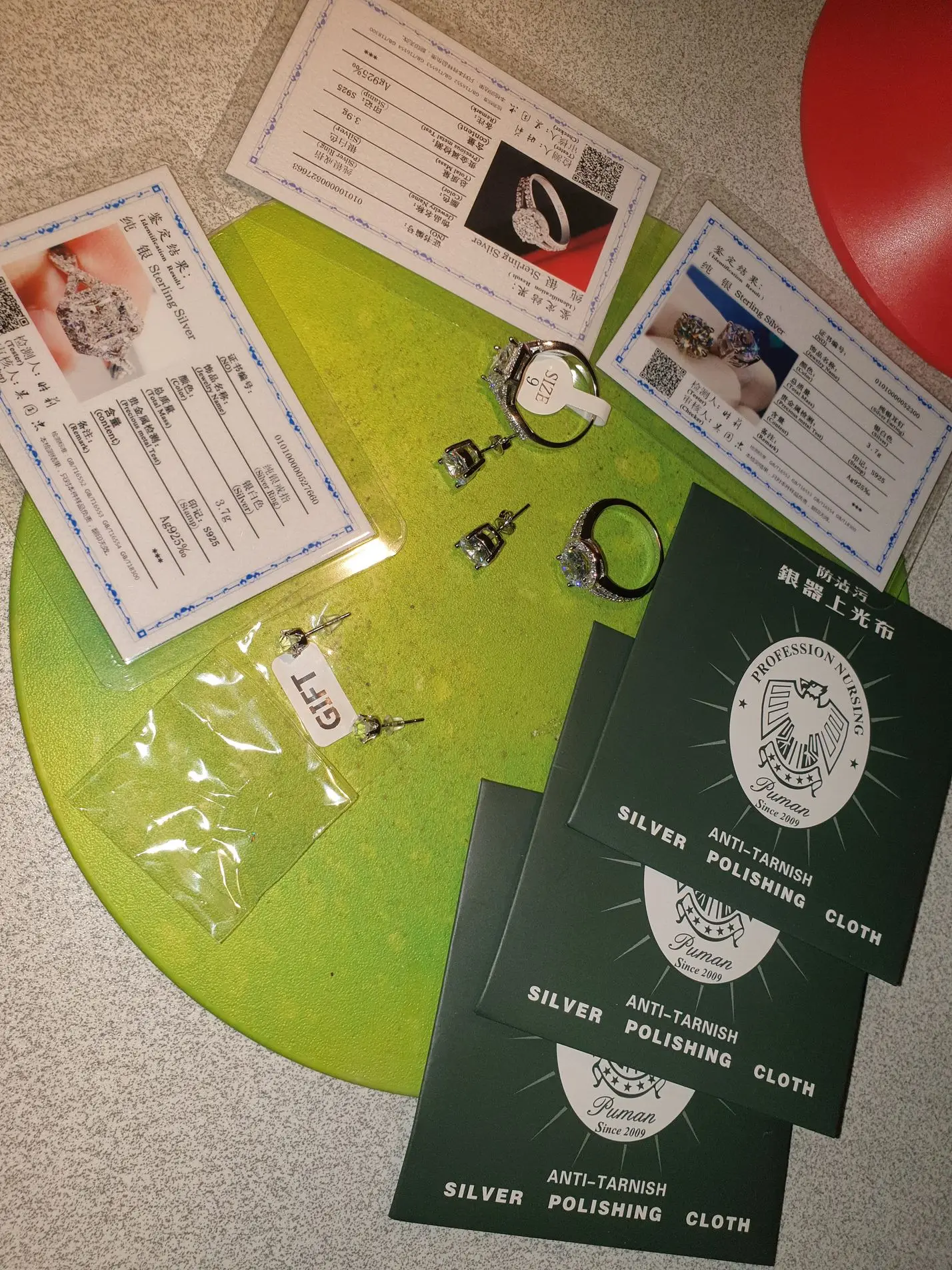 Покупала вместе с сережками. Качество супер. Камни переливаются. Есть проба. Продавец положил сертификаты и салфетку для серебра. Настоящее серебро или нет, не знаю, как проверить. Но выполнено на уровне ювелирного изделия, а не бижутерии. Упаковано в пакетики и в коробочку (1 штука). Но с размером, к сожалению, не угадала. Хоть и измеряла по методике продавца- бумажной полоской. 8 размер для меня оказался огромным! По фото видно. Ношу вроде наш 17 размер. Буду заказывать 6 размер. А это кольцо подарю. Отправлял продавец долго, кажется, продлевал 1 раз даже. Но пришло где-то за месяц, как и остальные посылки.
