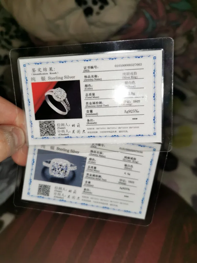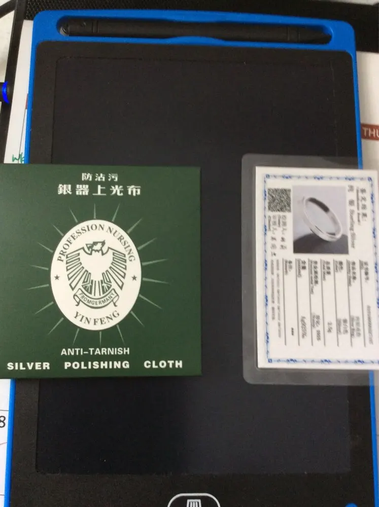 Очень красивое кольцо, приехало спустя месяц в Украину с сертификатом в котором заявлено что это серебро, и тряпочкой для чистки кольца. Заказом довольна!!