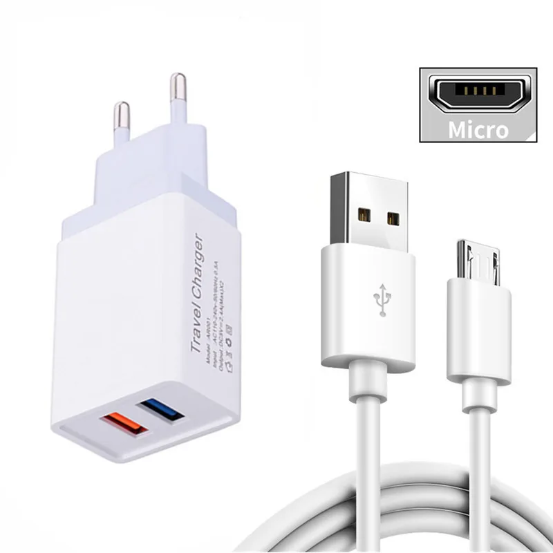 Настенный адаптер для зарядного устройства 5 В, 2 А и кабель Micro USB Type-C для зарядки телефонов Samsung, Huawei, Xiaomi Redmi, OPPO F5, F17, Realme 3, 5 Pro