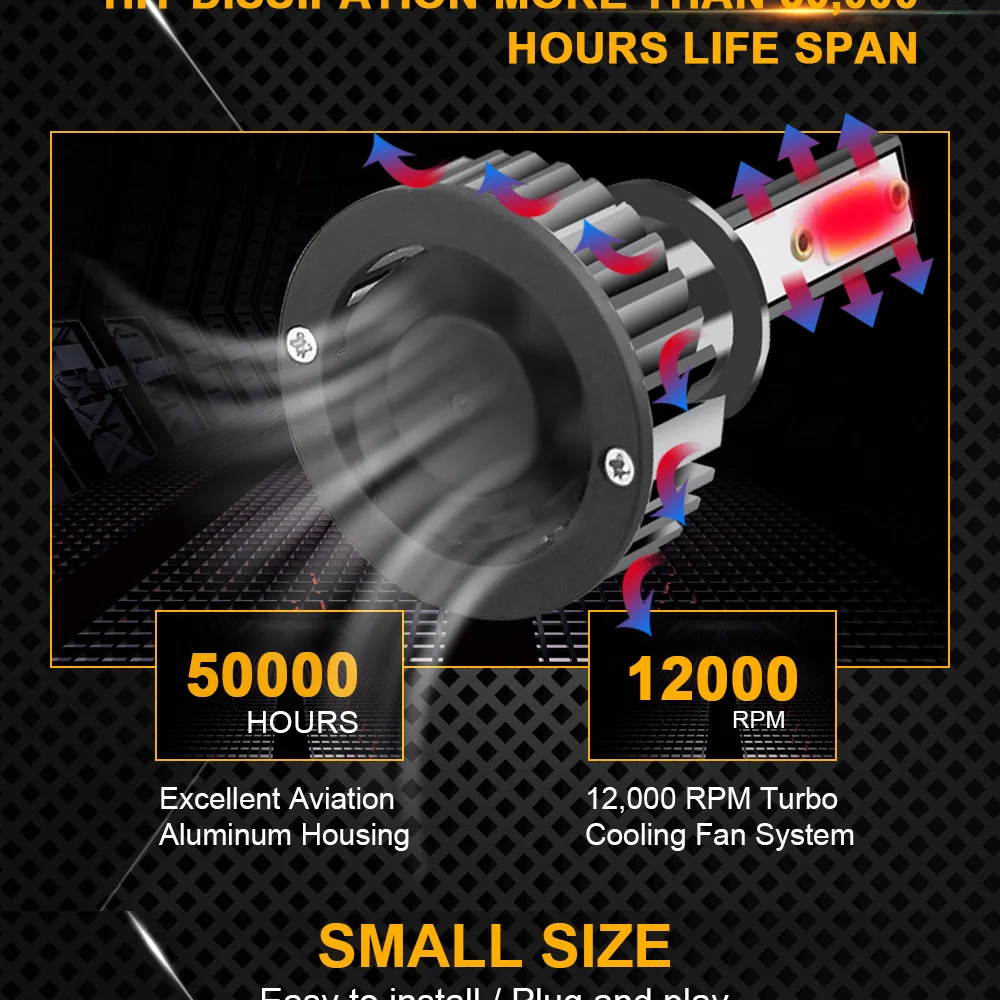 Светодиодная фара пандук, 3000K, 4300K, 6000K, 12000лм, 12 В, 8000, HB3, H1, H4, H3, H7, H11, 9005, HB4, 9006, 2 шт.