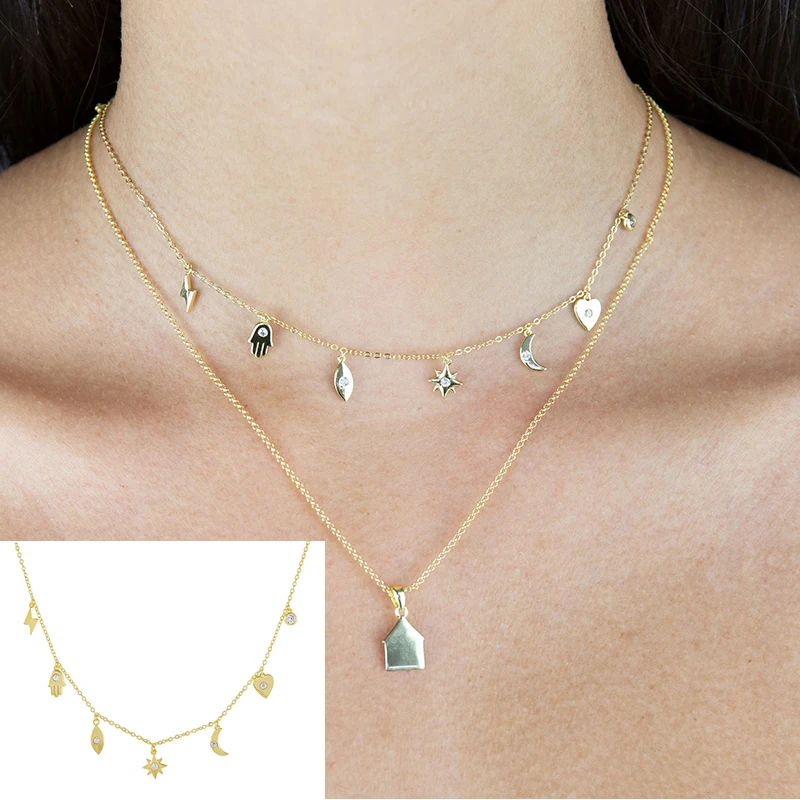 Женский кулон в виде звезд, Луны, пчелы из серебра 925 пробы