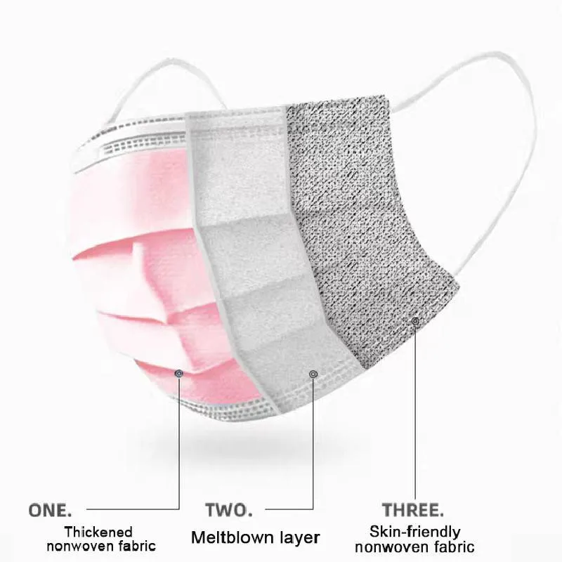 10-200 шт. розовый одноразовая маска для лица из нетканого материал...