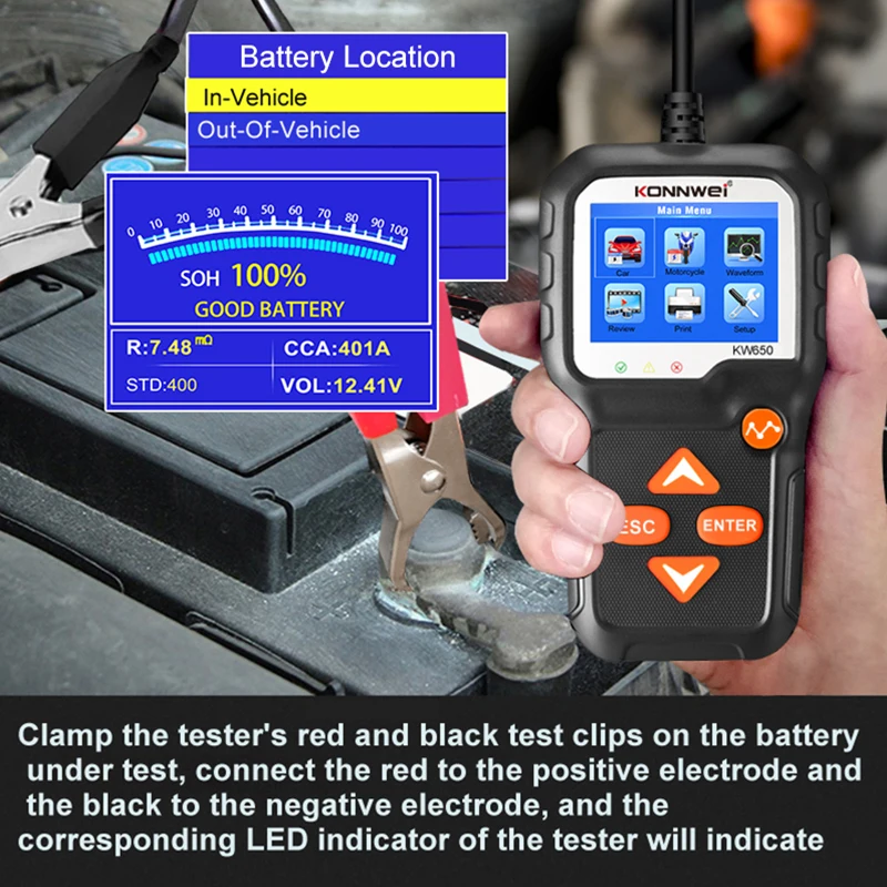 Модель: KW650 тестер батареи мотоцикла и автомобиля