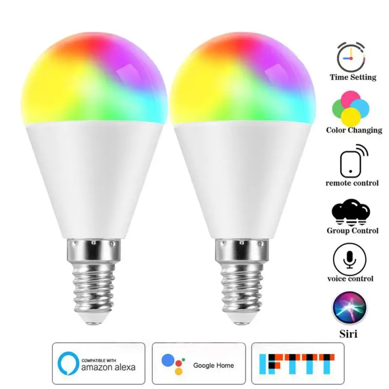 WiFi Голосовое управление RGB энергосберегающий затемняющий СВЕТОДИОДНЫЙ многоцветный смарт-лампочка 6 Вт E14 2020