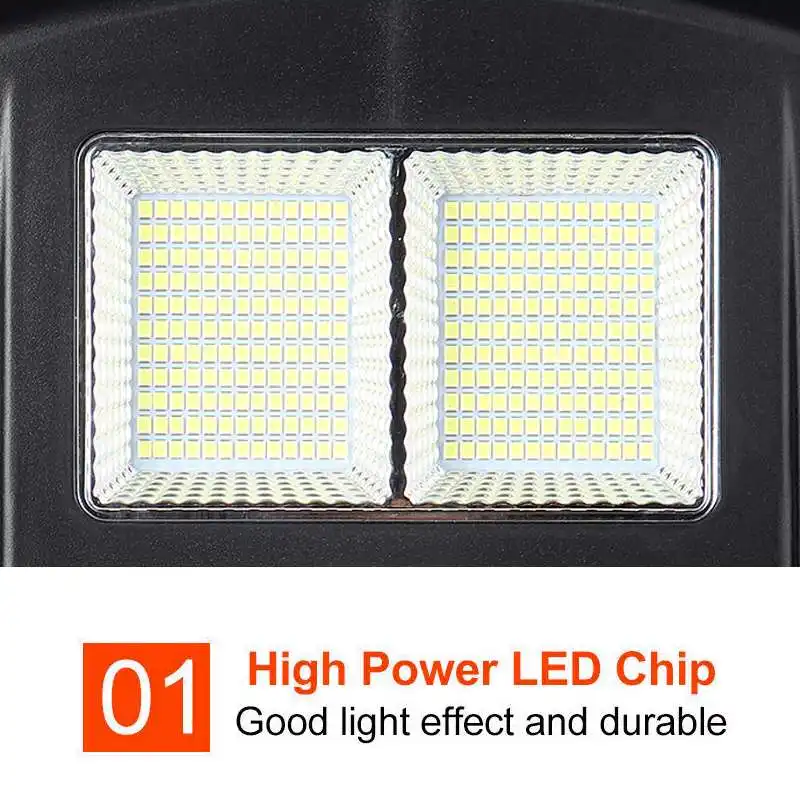 600 Вт 286LED:Количество СВЕТОДИОДНЫЙ: 286 светодиодный 2835MDВремя освещения полной зарядки: 6 чВремя разряда: 8-12 чВысота установки: 4 мРасстояние срабатывания: 6 мПлощадь светильника: >80 ㎡Водонепроницаемость: IP67Угол срабатывания: 120 градусовЦветовая температура: 5000-6000KСолнечная панель: 9 Вт/6 в поликристаллическая солнечная панельРежим: светильник + индукция человеческого тела + пульт дистанционного управленияБатарея capcity: 3,2 V/5000mAh литий-железо фосфат батарея (встроенный)