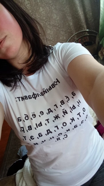 классная майка качество материи очень впечетлило! мягкая и эласичная. а принт, вообще супер размер берите свой, соответствует