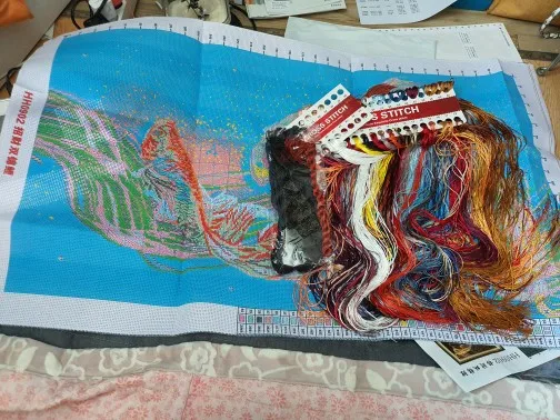 Название продукта: золотая рыбка/рыбка Размер холста: 11CT:89*54 см; 9CT:108*65 см Размер изображения: 11CT:79*44 см; 9CT:98*55 см Вид спиреи: 40 Полная вышивка: полная вышивка Комплектация: ткань для вышивки, нитки, атлас, инструменты (подарок) Применимые варианты: гостиная, спальня, прихожая, коридор и т. д. Примечание: 11CT (Используйте трехниточную вышивку), 9CT (Используйте четырехниточную вышивку)