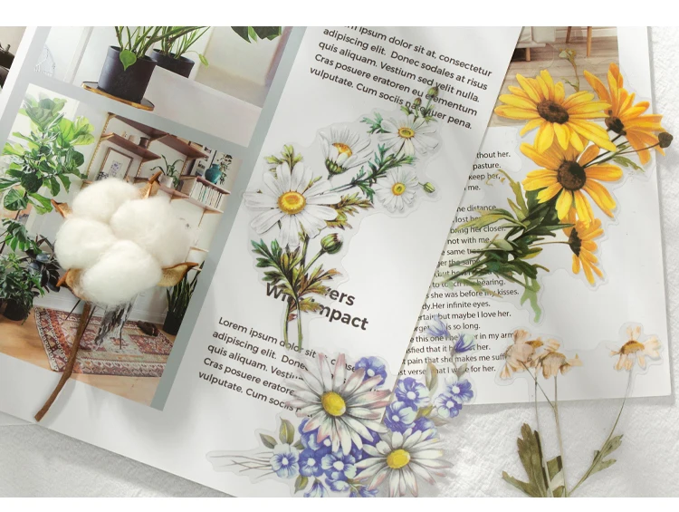 Винтажные декоративные наклейки 11 шт.лот, растения, маргаритки, ба...