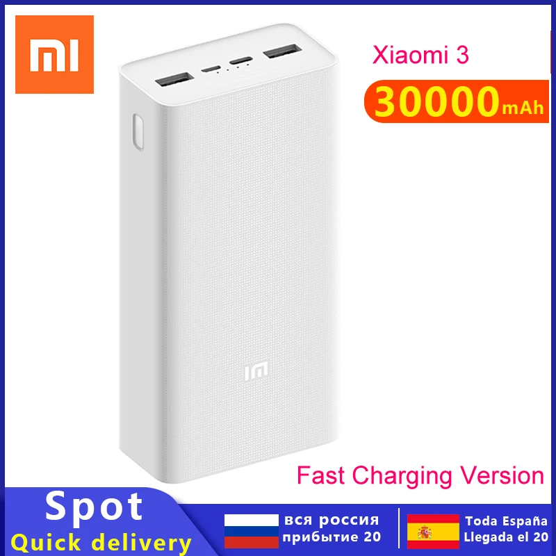 Оригинальный внешний аккумулятор XiaoMi Power Bank 3, 30000 мАч, версия с быстрой зарядкой, аккумулятор большой емкости на 10 дней, для умного дома, Прямая поставка