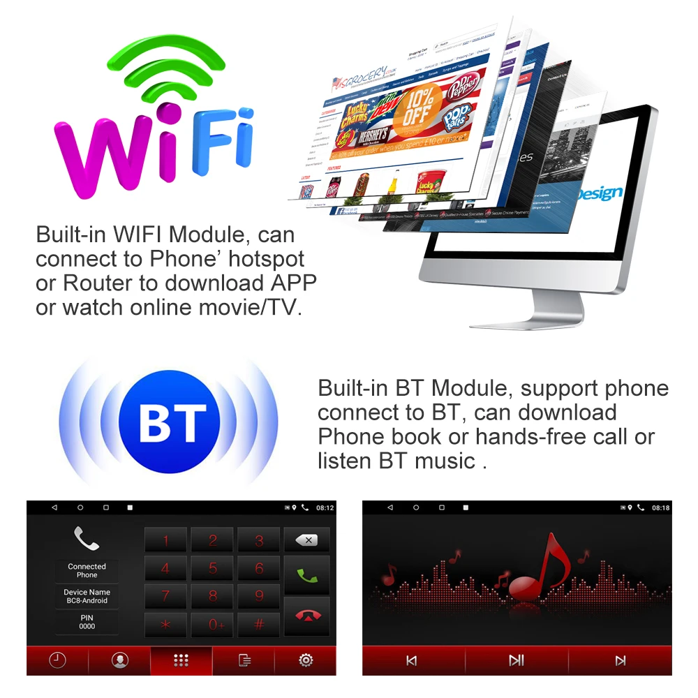 ● Встроенная функция Bluetooth, может подключаться к мобильный телефон и поддерживать звонки без рук, загрузку телефонной книги, воспроизведение музыки по Bluetooth, более безопасное вождение