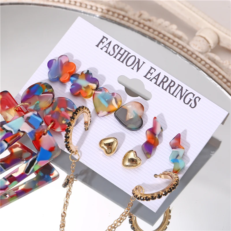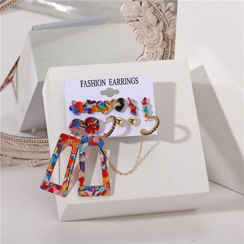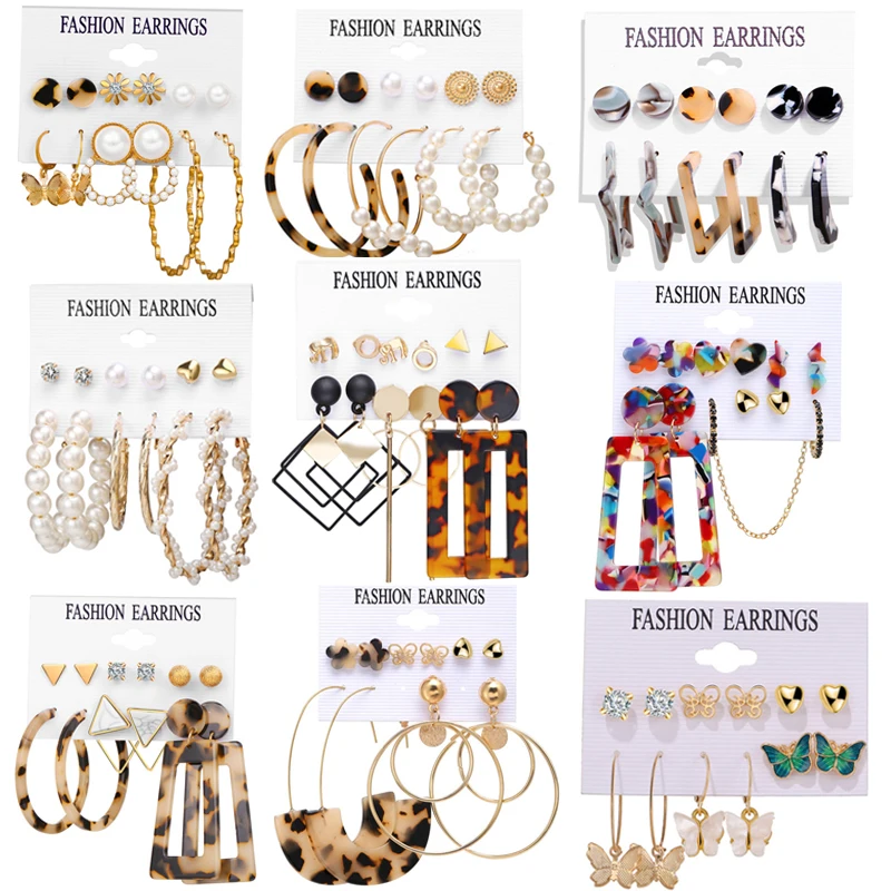 Модные Винтажные большие смешанные Комплект сережек для женщин геом...