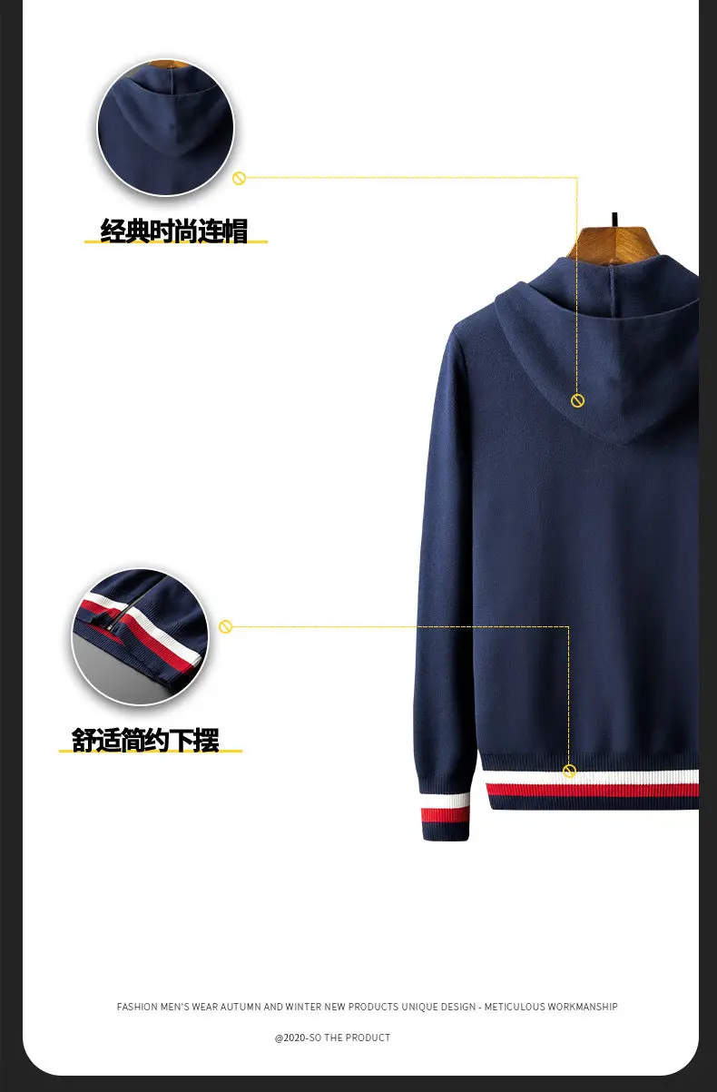 Высококачественный мужской кардиган с капюшоном, свитер, куртка, мужской свитер, свитер, Осенний хлопковый трикотаж для мальчиков, парная верхняя одежда с капюшоном для женщин