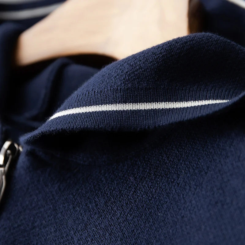 Мужской трикотажный свитер с отложным воротником, с высоким воротником