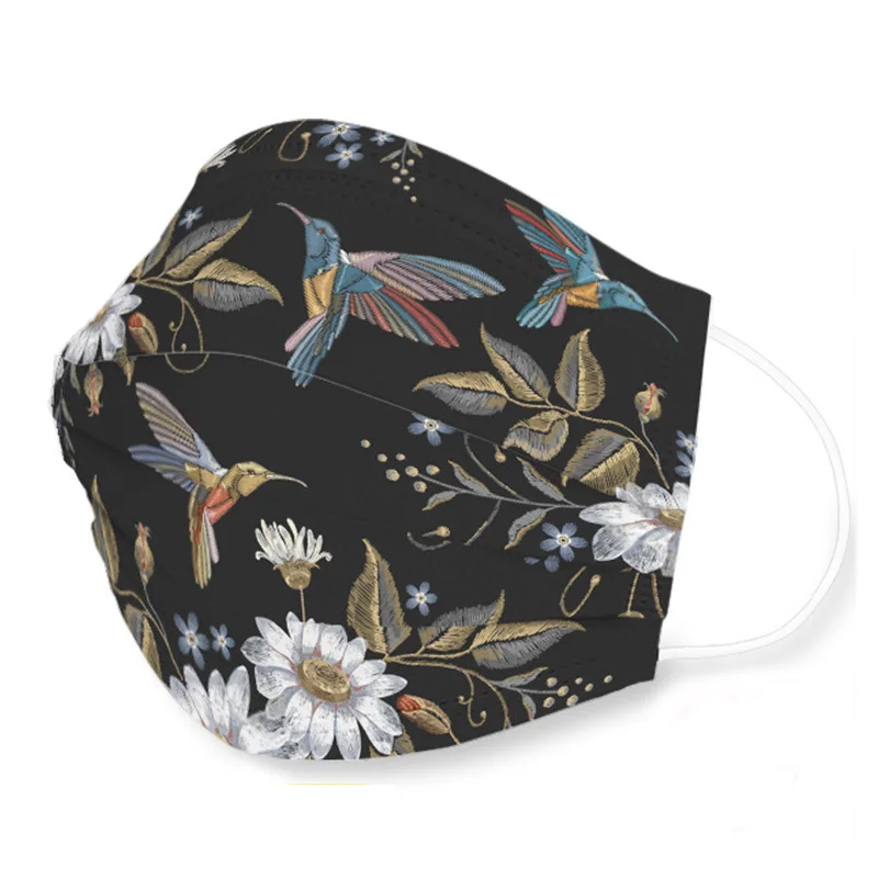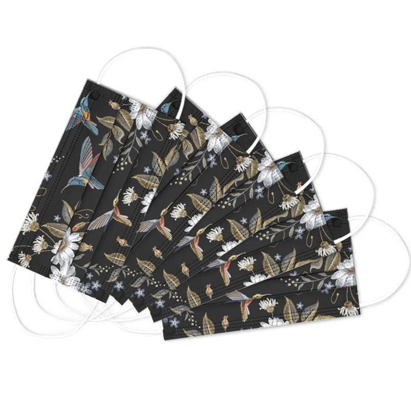 1050 шт. 3 Слои одноразовая маска для лица с фильтром черная маска для лица птица Цветочный принт дизайн черного цвета для взрослых с открытым носком маски Для женщин