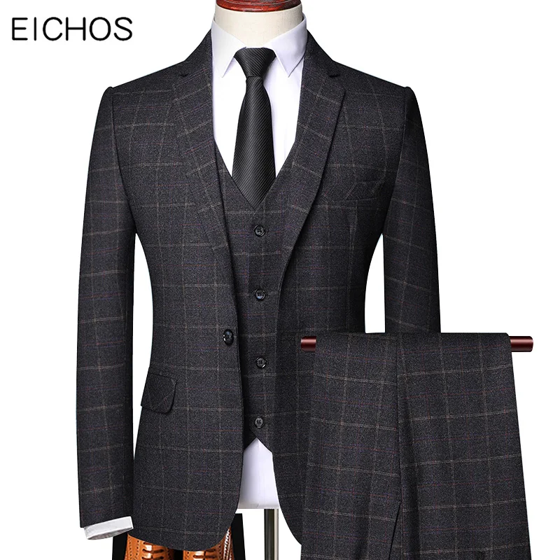 2020 мужской деловой костюм из трех предметов в клетку, костюм для ...