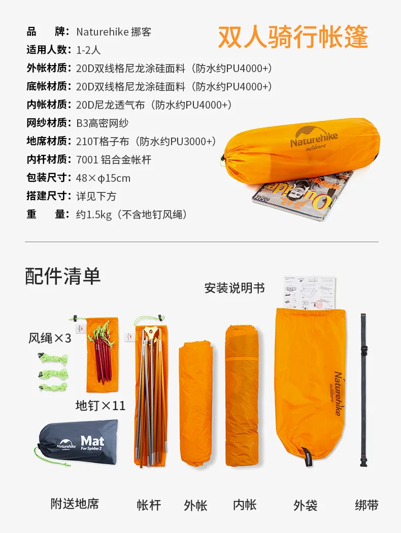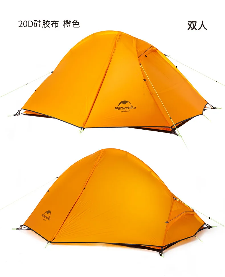 Палатка Naturehike туристическая Ультралегкая, 20D нейлоновая Водонепроницаемая двухслойная, на 2 человек, для отдыха на открытом воздухе, путешествий, велоспорта, походов